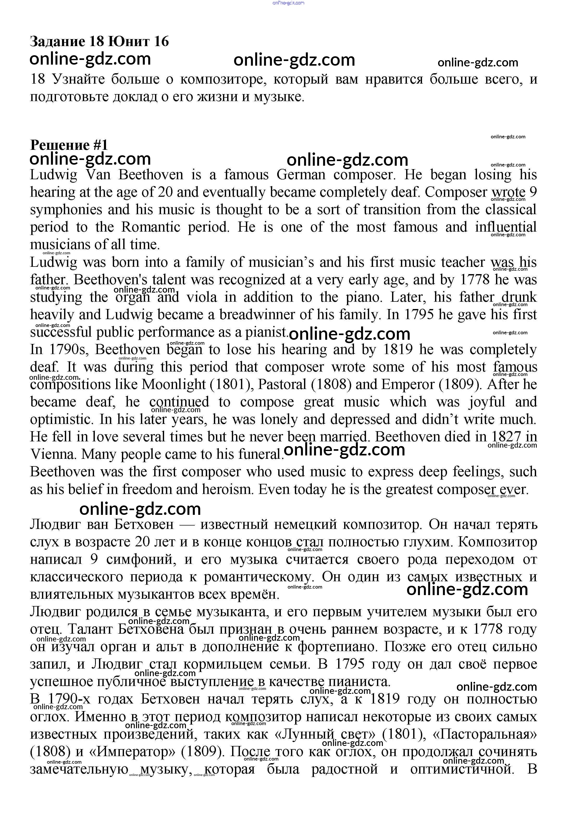 Готовые домашние задания по Английскому языку за 6 класс Учебник Вербицкая, Гаярделли Forward 2017 - Unit 16. The world of music Часть 2 18