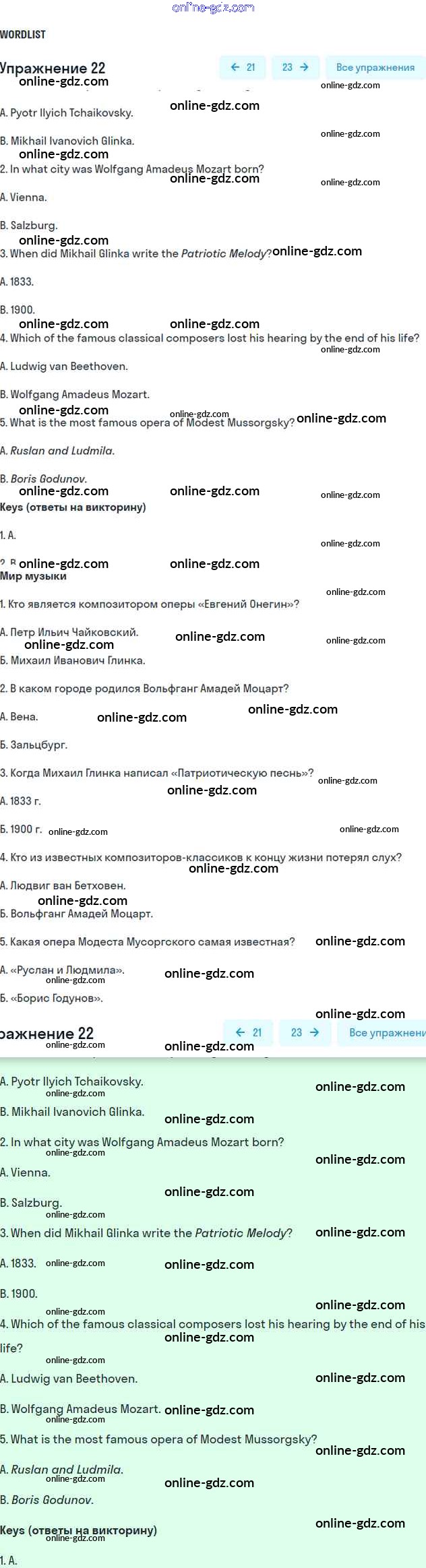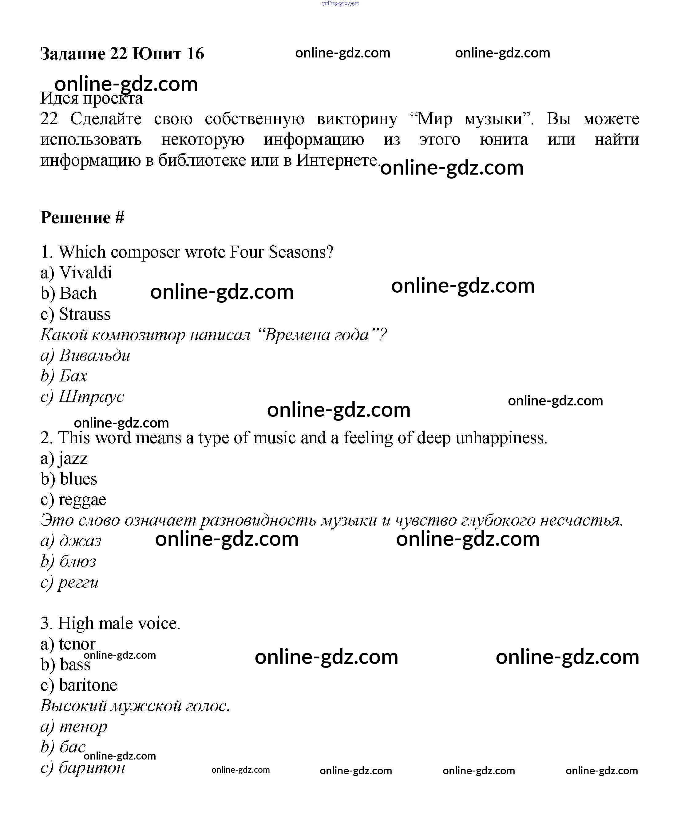 Готовые домашние задания по Английскому языку за 6 класс Учебник Вербицкая, Гаярделли Forward 2017 - Unit 16. The world of music Часть 2 22