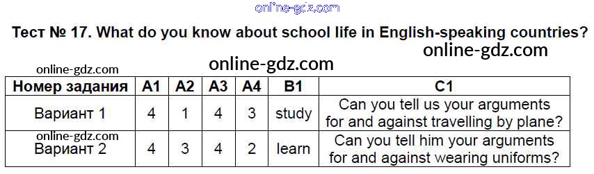 Готовые домашние задания по Английскому языку за 7 класс Контрольно-измерительные материалы (КИМ) Артюхова 2017 - Тесты 17