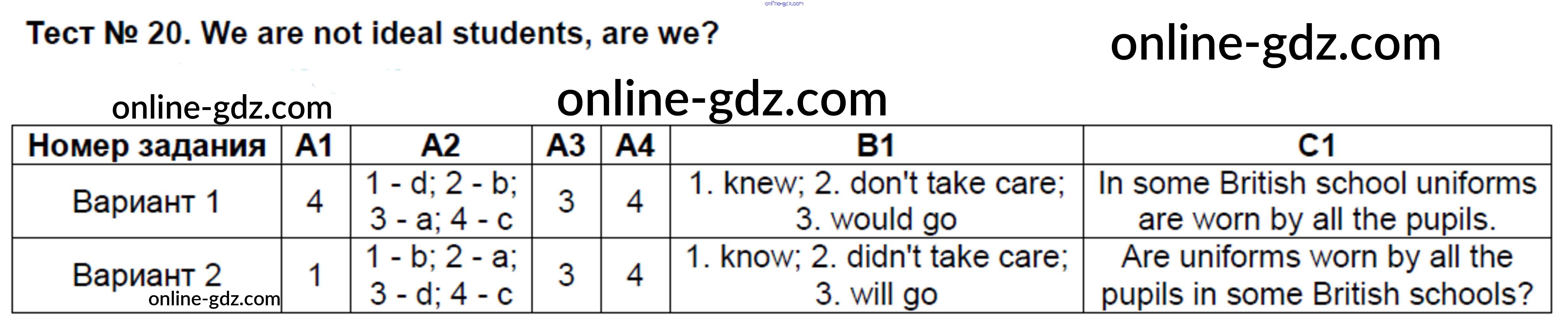 Готовые домашние задания по Английскому языку за 7 класс Контрольно-измерительные материалы (КИМ) Артюхова 2017 - Тесты 20
