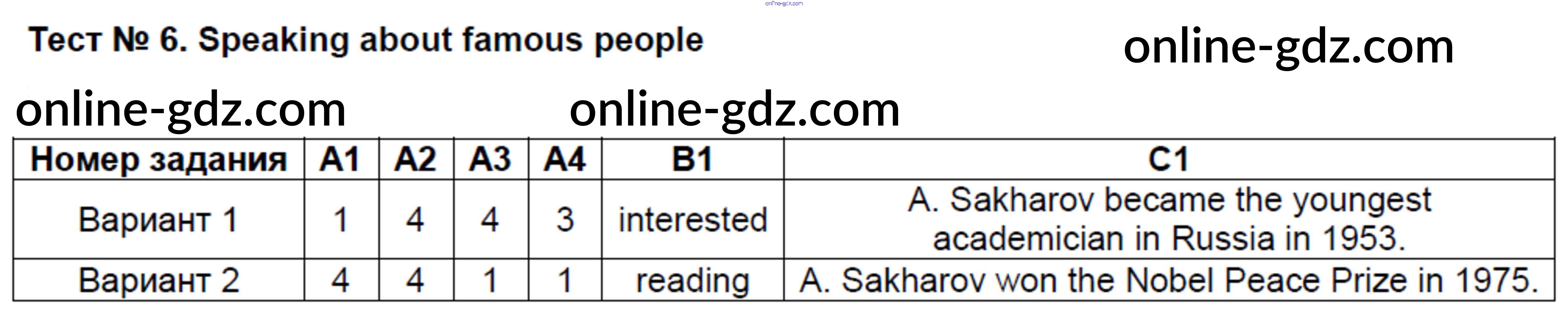 Готовые домашние задания по Английскому языку за 7 класс Контрольно-измерительные материалы (КИМ) Артюхова 2017 - Тесты 6