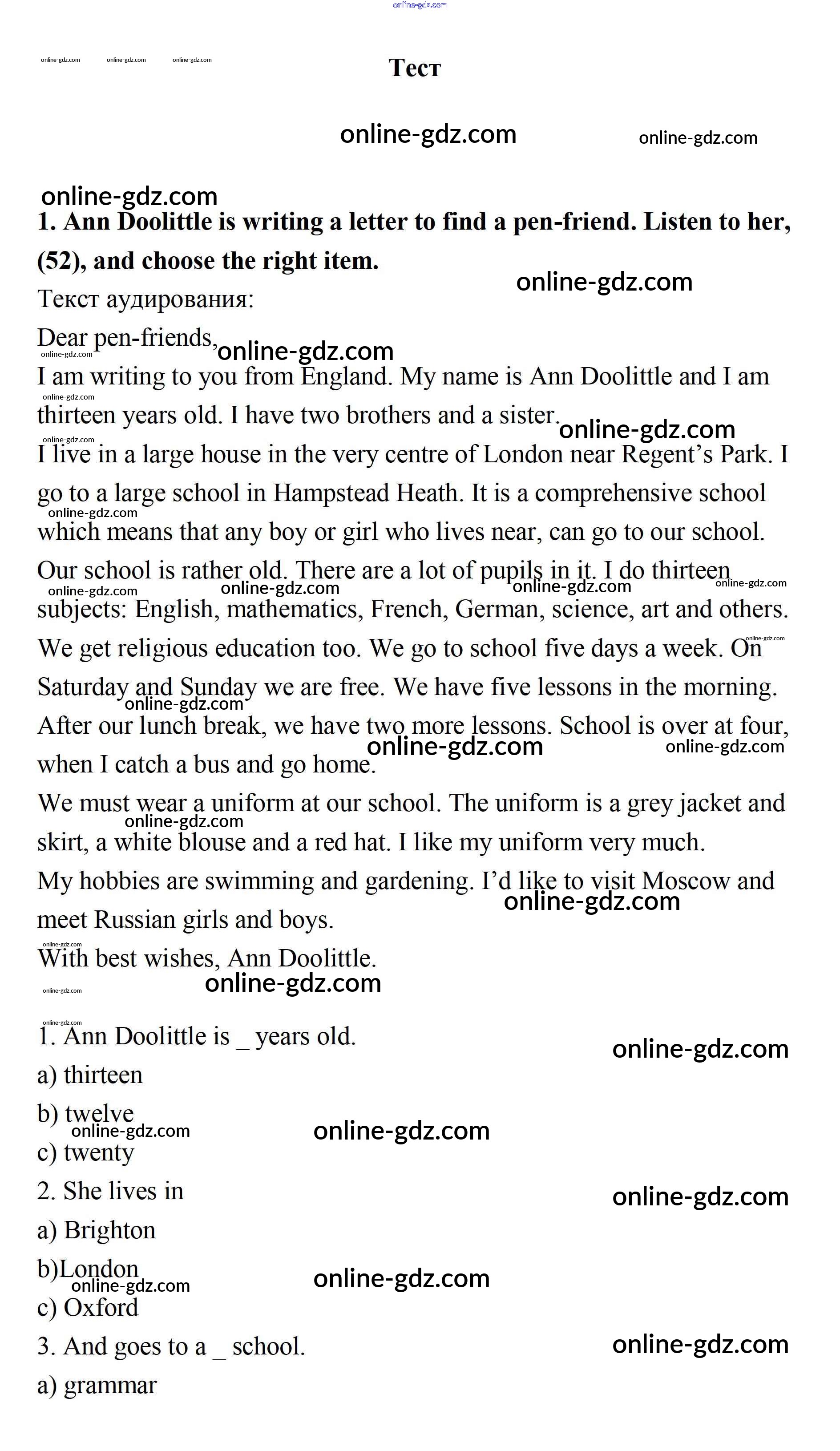 Готовые домашние задания по Английскому языку за 7 класс Рабочая тетрадь Афанасьева, Михеева Новый курс 2017 - Test Unit 7 1