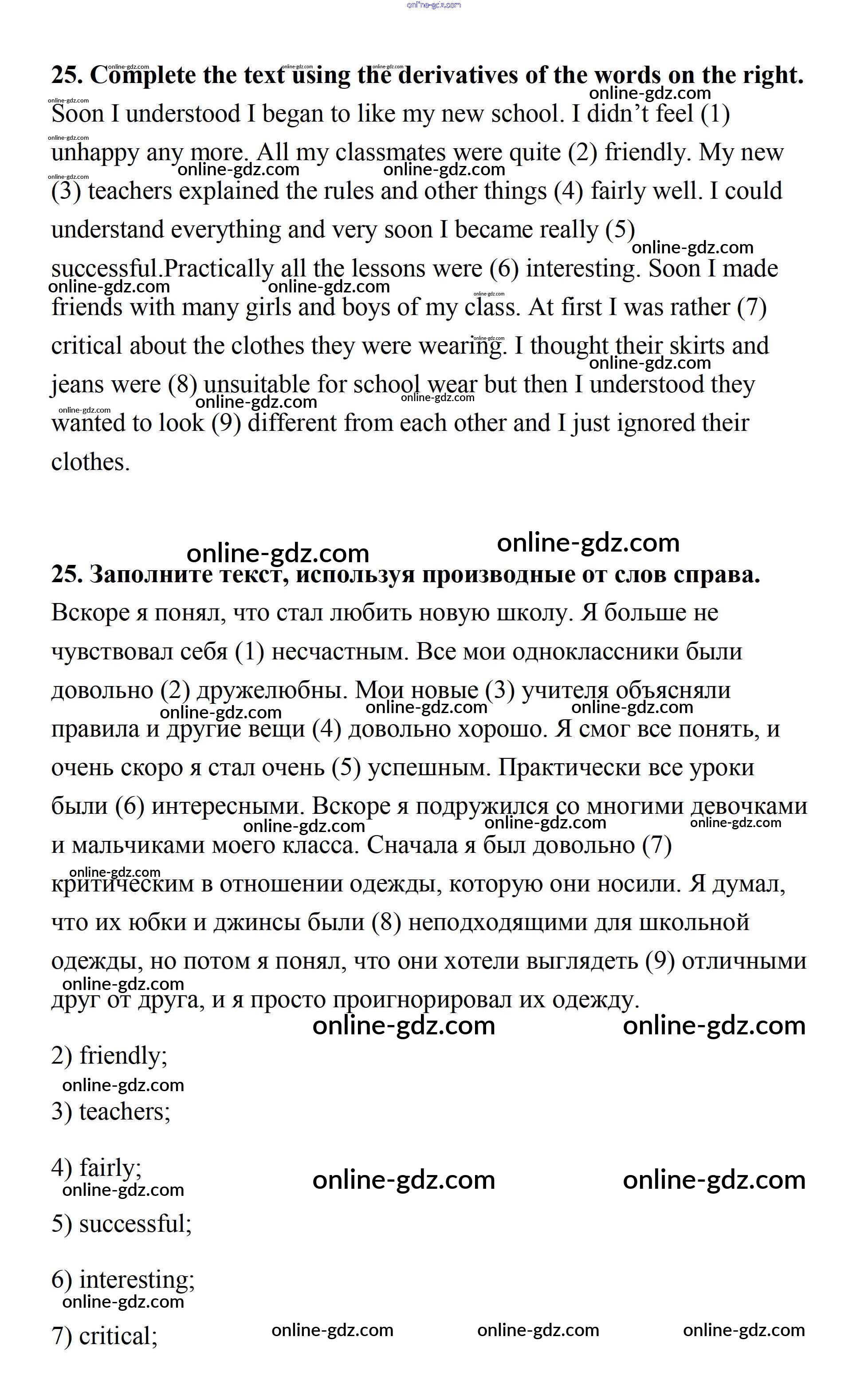 Готовые домашние задания по Английскому языку за 7 класс Рабочая тетрадь Афанасьева, Михеева Rainbow 2019 - Unit 1 25