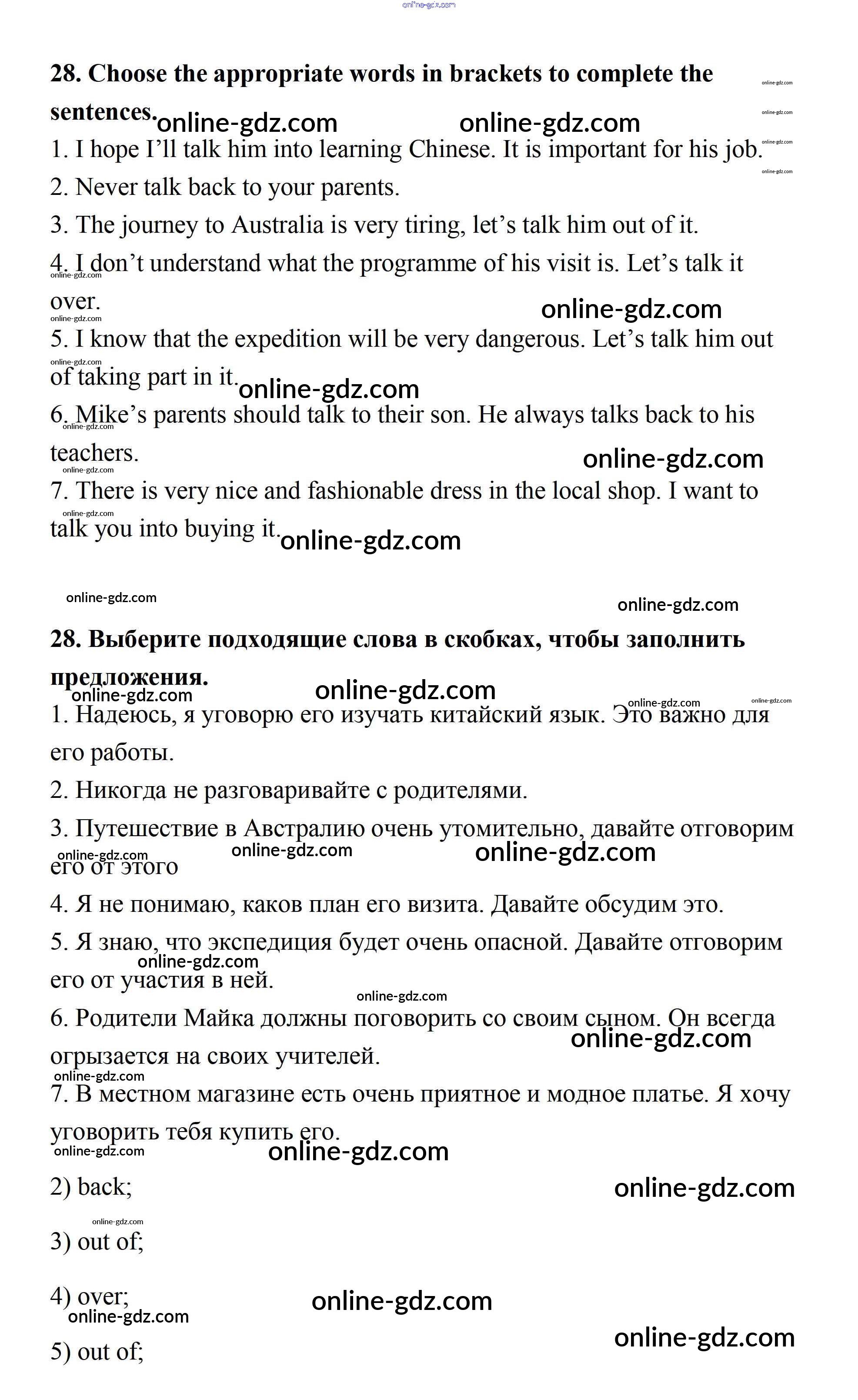 Готовые домашние задания по Английскому языку за 7 класс Рабочая тетрадь Афанасьева, Михеева Rainbow 2019 - Unit 1 28