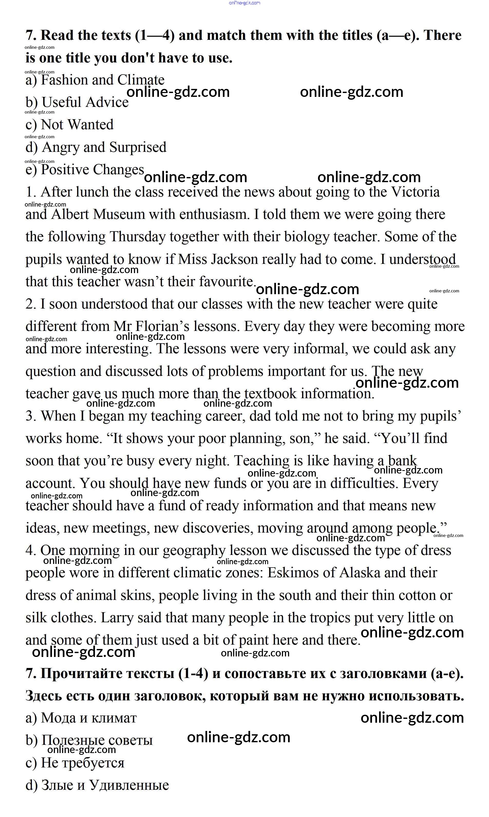 Готовые домашние задания по Английскому языку за 7 класс Рабочая тетрадь Афанасьева, Михеева Rainbow 2019 - Unit 1 7