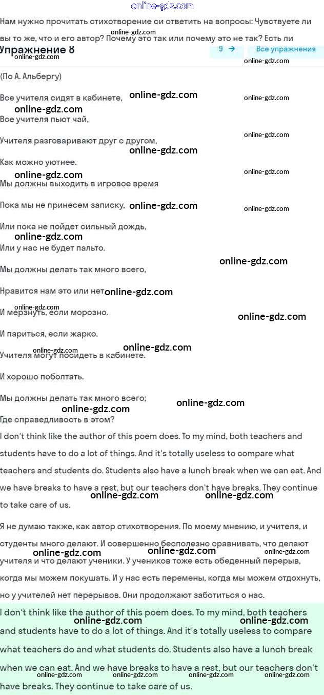 Готовые домашние задания по Английскому языку за 7 класс Рабочая тетрадь Афанасьева, Михеева Rainbow 2019 - Unit 1 8