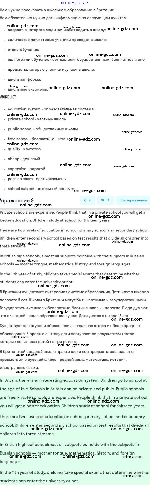 Готовые домашние задания по Английскому языку за 7 класс Рабочая тетрадь Афанасьева, Михеева Rainbow 2019 - Unit 1 9