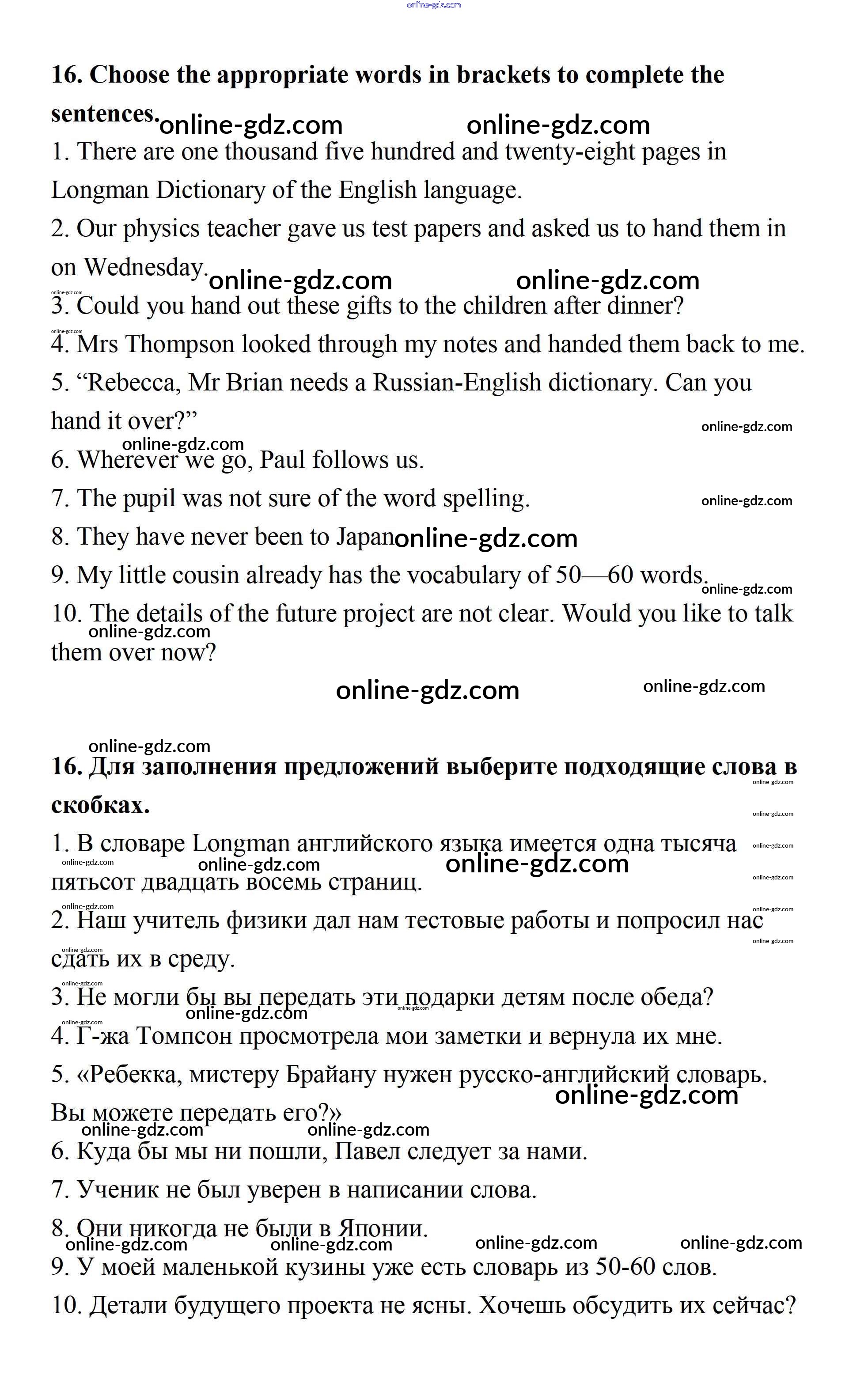 Готовые домашние задания по Английскому языку за 7 класс Рабочая тетрадь Афанасьева, Михеева Rainbow 2019 - Unit 2 16