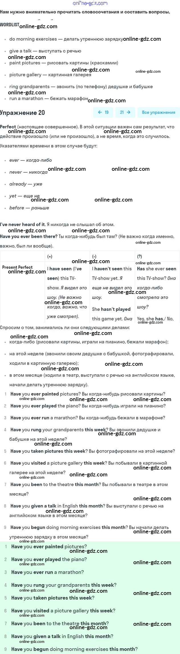 Готовые домашние задания по Английскому языку за 7 класс Рабочая тетрадь Афанасьева, Михеева Rainbow 2019 - Unit 2 20