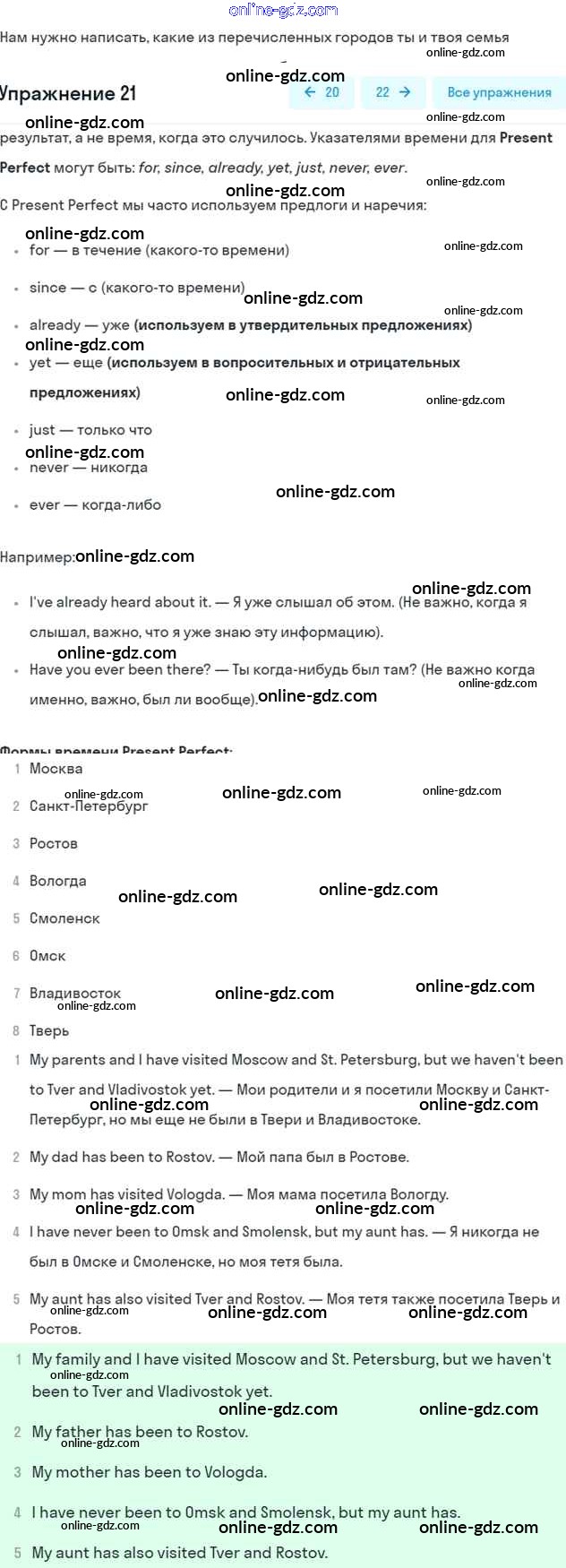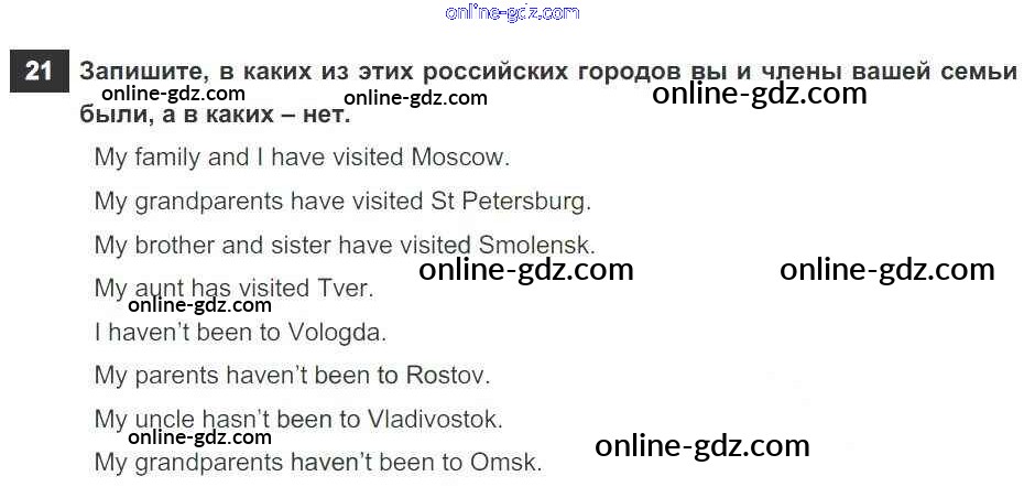 Готовые домашние задания по Английскому языку за 7 класс Рабочая тетрадь Афанасьева, Михеева Rainbow 2019 - Unit 2 21