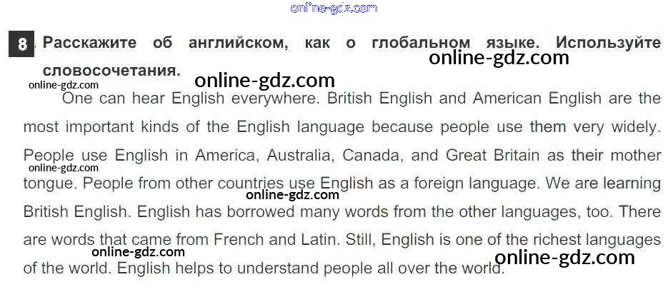 Готовые домашние задания по Английскому языку за 7 класс Рабочая тетрадь Афанасьева, Михеева Rainbow 2019 - Unit 2 8