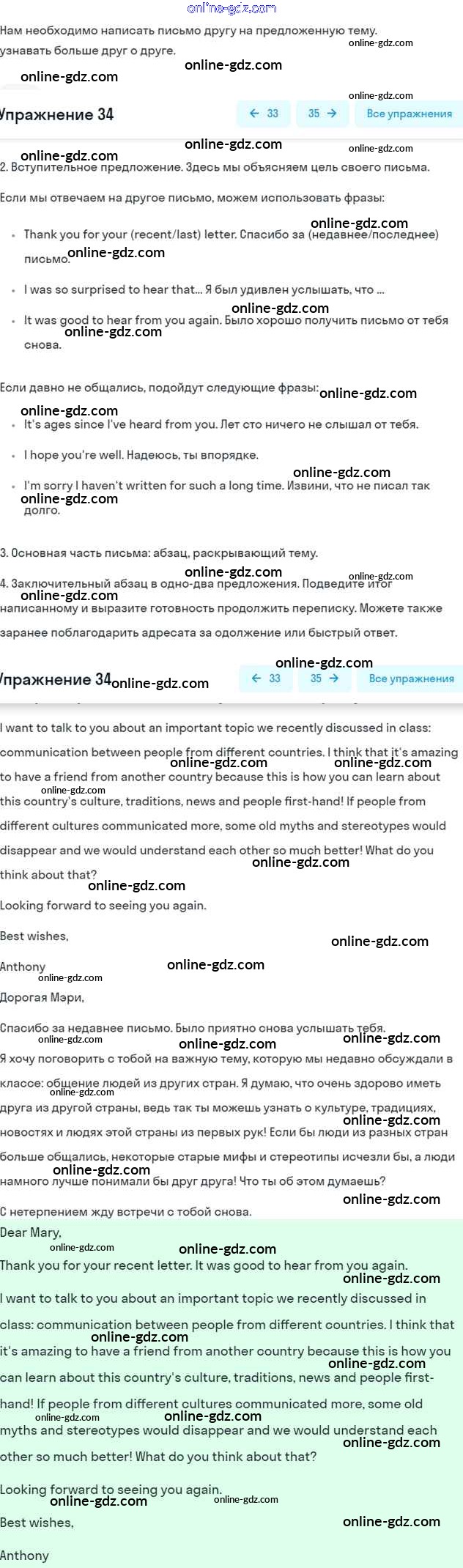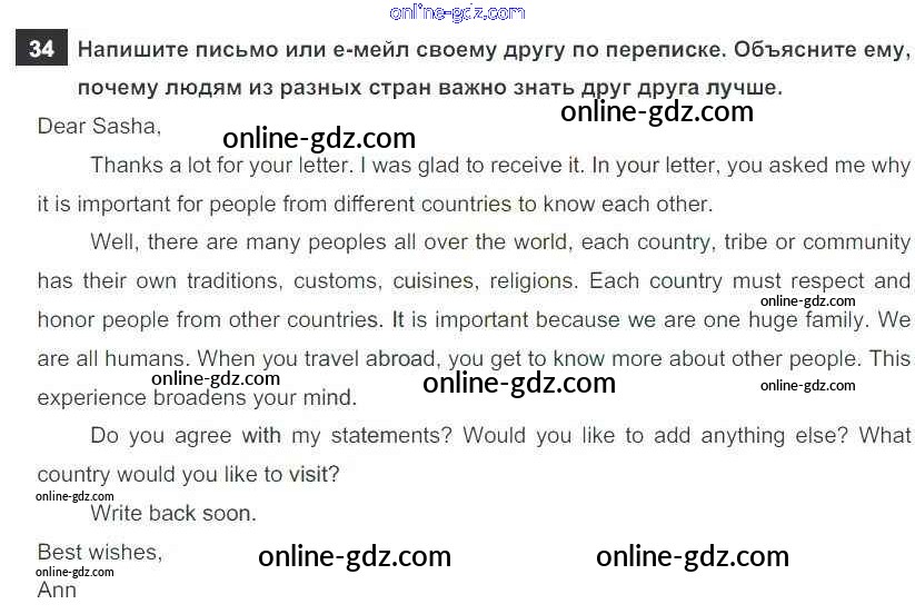 Готовые домашние задания по Английскому языку за 7 класс Рабочая тетрадь Афанасьева, Михеева Rainbow 2019 - Unit 3 34