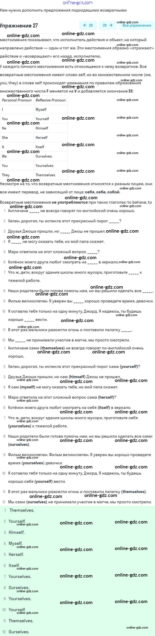 Готовые домашние задания по Английскому языку за 7 класс Рабочая тетрадь Афанасьева, Михеева Rainbow 2019 - Unit 5 27