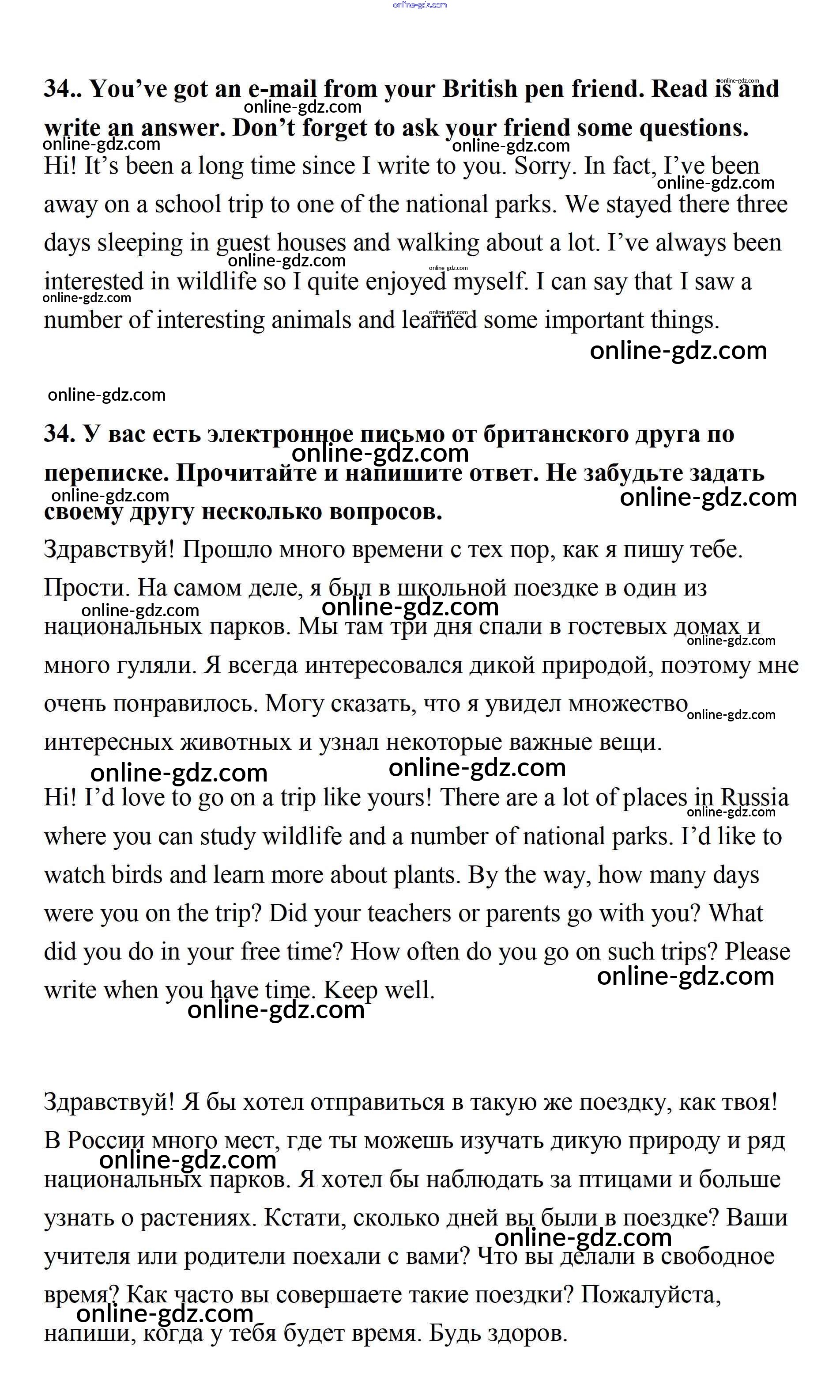 Готовые домашние задания по Английскому языку за 7 класс Рабочая тетрадь Афанасьева, Михеева Rainbow 2019 - Unit 5 34