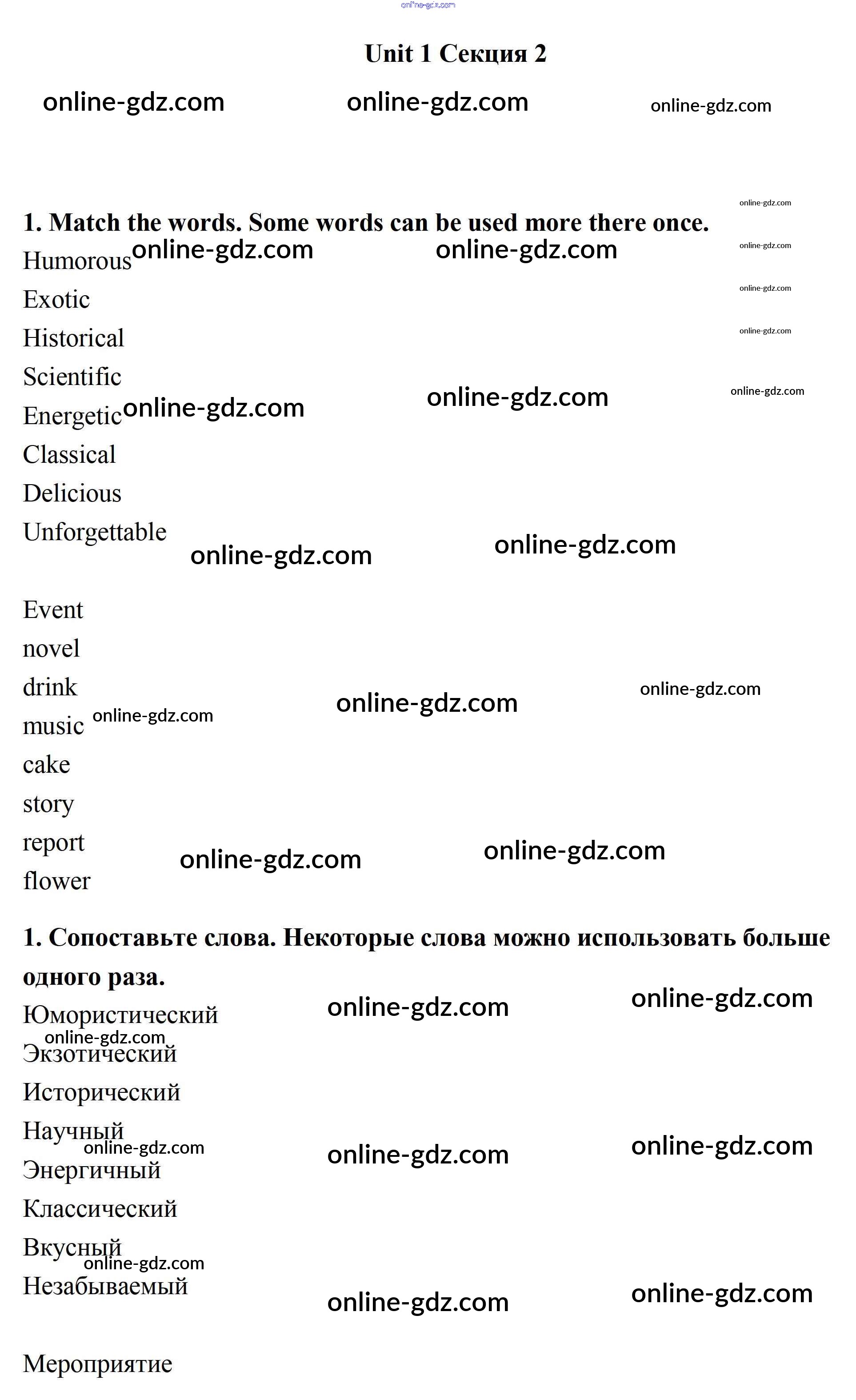 Готовые домашние задания по Английскому языку за 7 класс Рабочая тетрадь Биболетова, Бабушис Enjoy English 2015 - Секция 2 Unit 1 1