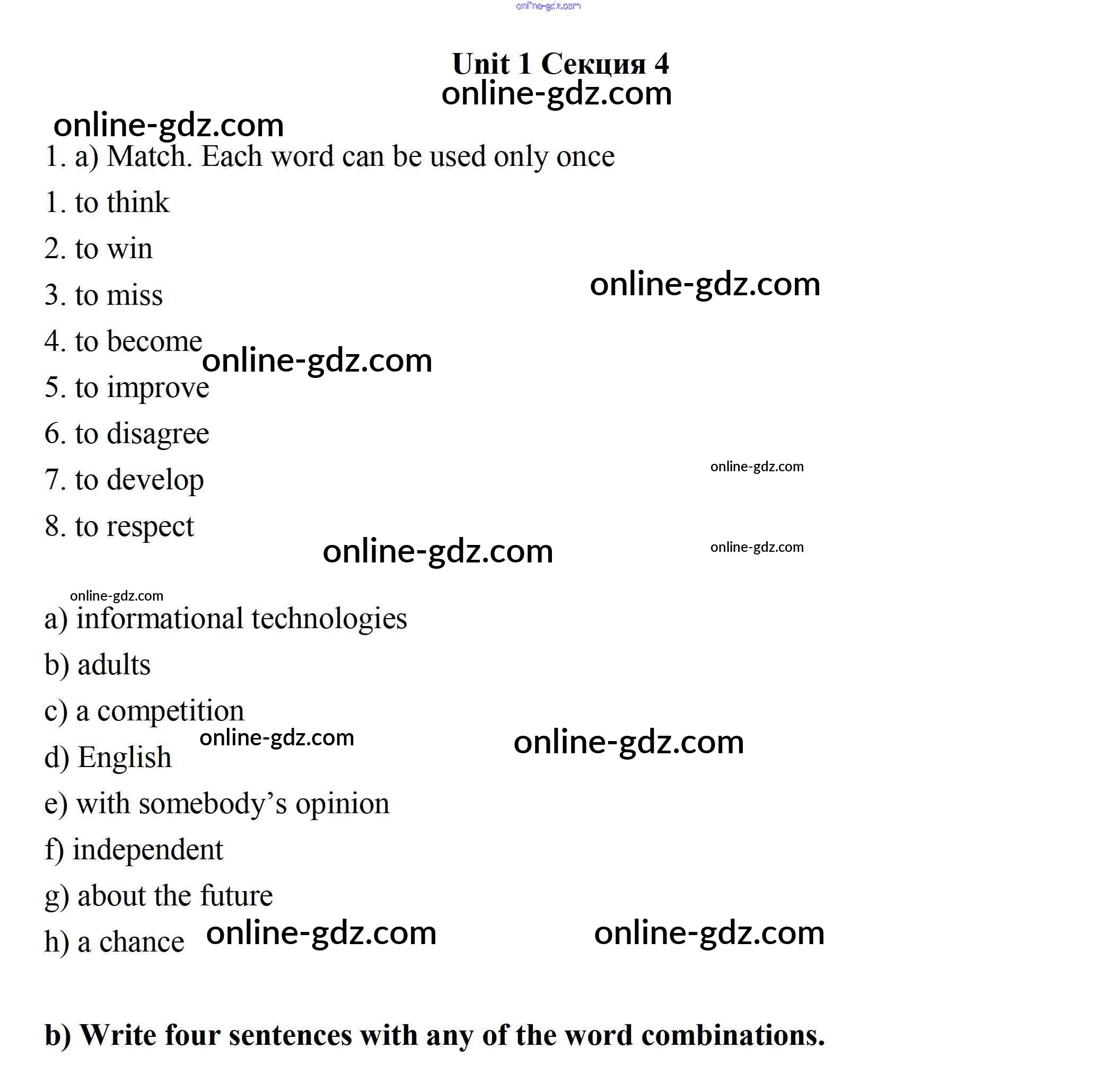 Готовые домашние задания по Английскому языку за 7 класс Рабочая тетрадь Биболетова, Бабушис Enjoy English 2015 - Секция 4 Unit 1 1