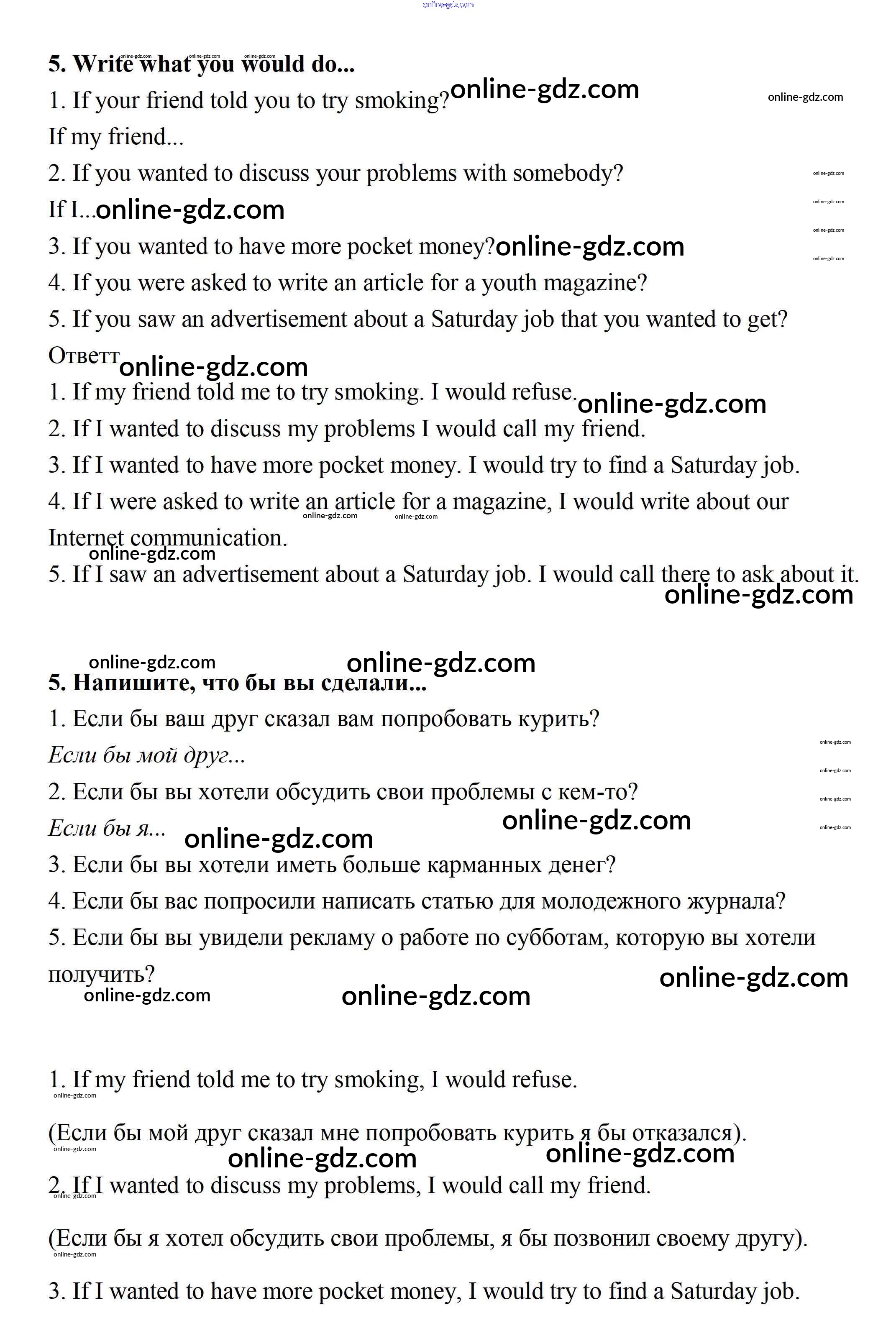 Готовые домашние задания по Английскому языку за 7 класс Рабочая тетрадь Биболетова, Бабушис Enjoy English 2015 - Секция 9 Unit 3 5