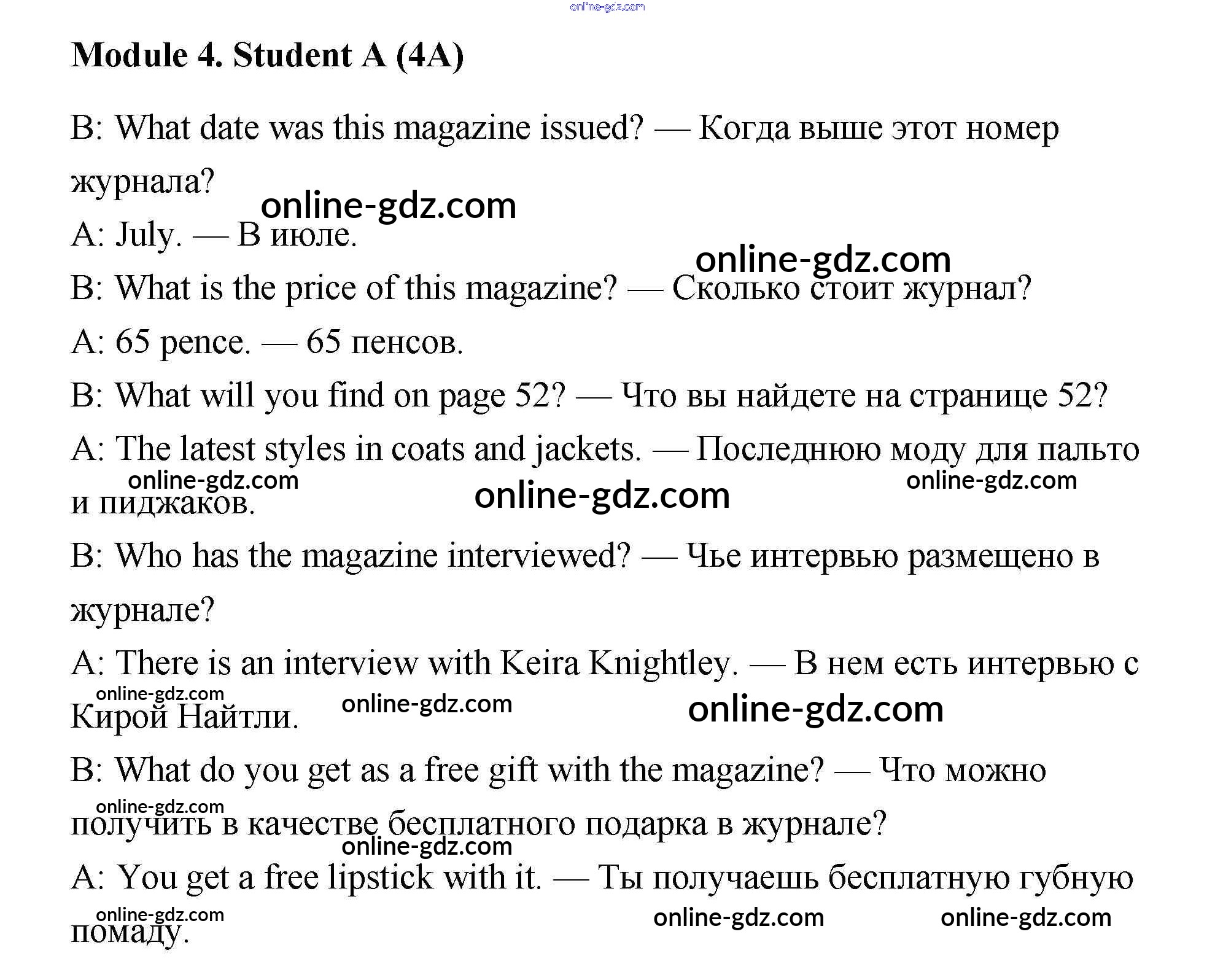 Готовые домашние задания по Английскому языку за 7 класс Рабочая тетрадь Ваулина, Подоляко Spotlight 2015 - Student A Работа в парах (Module) 4