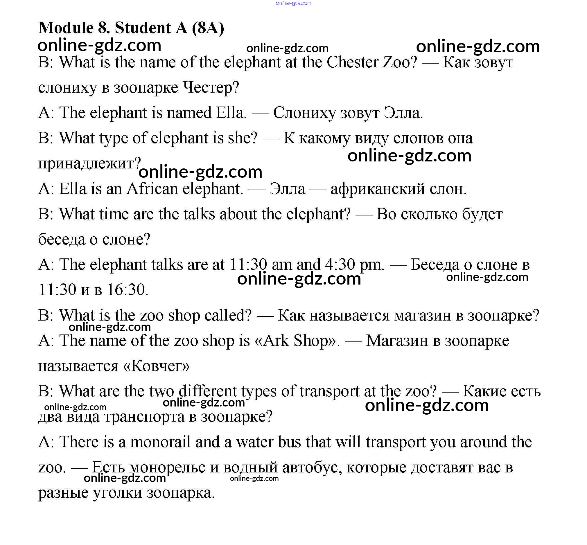 Готовые домашние задания по Английскому языку за 7 класс Рабочая тетрадь Ваулина, Подоляко Spotlight 2015 - Student A Работа в парах (Module) 8