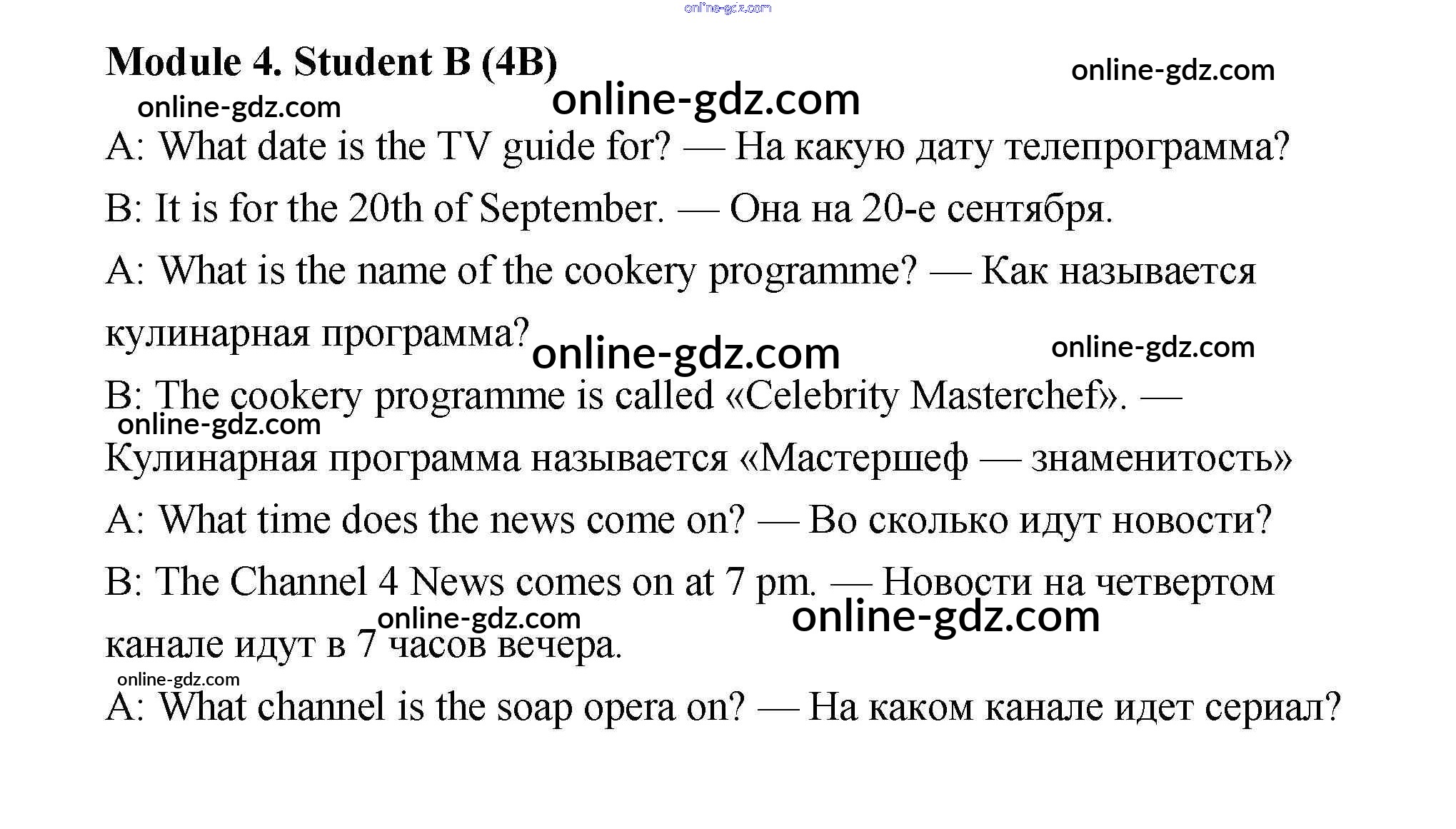 Готовые домашние задания по Английскому языку за 7 класс Рабочая тетрадь Ваулина, Подоляко Spotlight 2015 - Student B Работа в парах (Module) 4