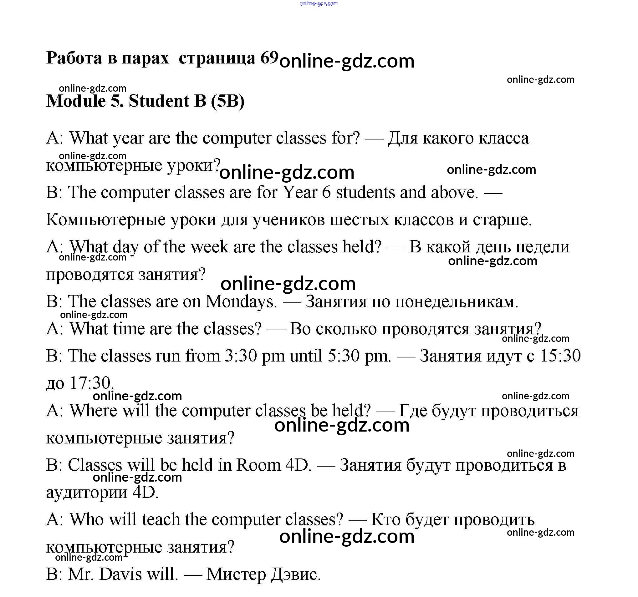 Готовые домашние задания по Английскому языку за 7 класс Рабочая тетрадь Ваулина, Подоляко Spotlight 2015 - Student B Работа в парах (Module) 5