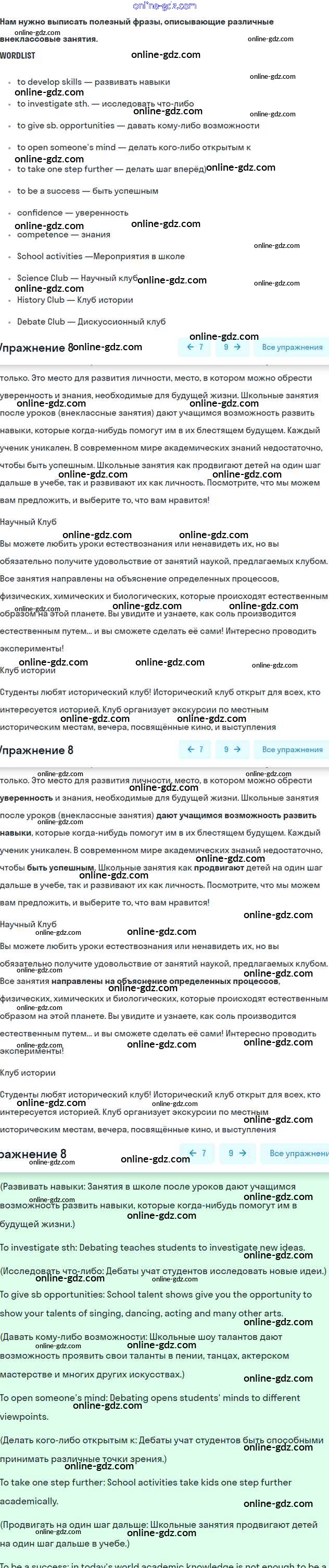 Готовые домашние задания по Английскому языку за 7 класс Рабочая тетрадь Вербицкая, Гаярделли Forward 2015 - Unit 5. School activities 8