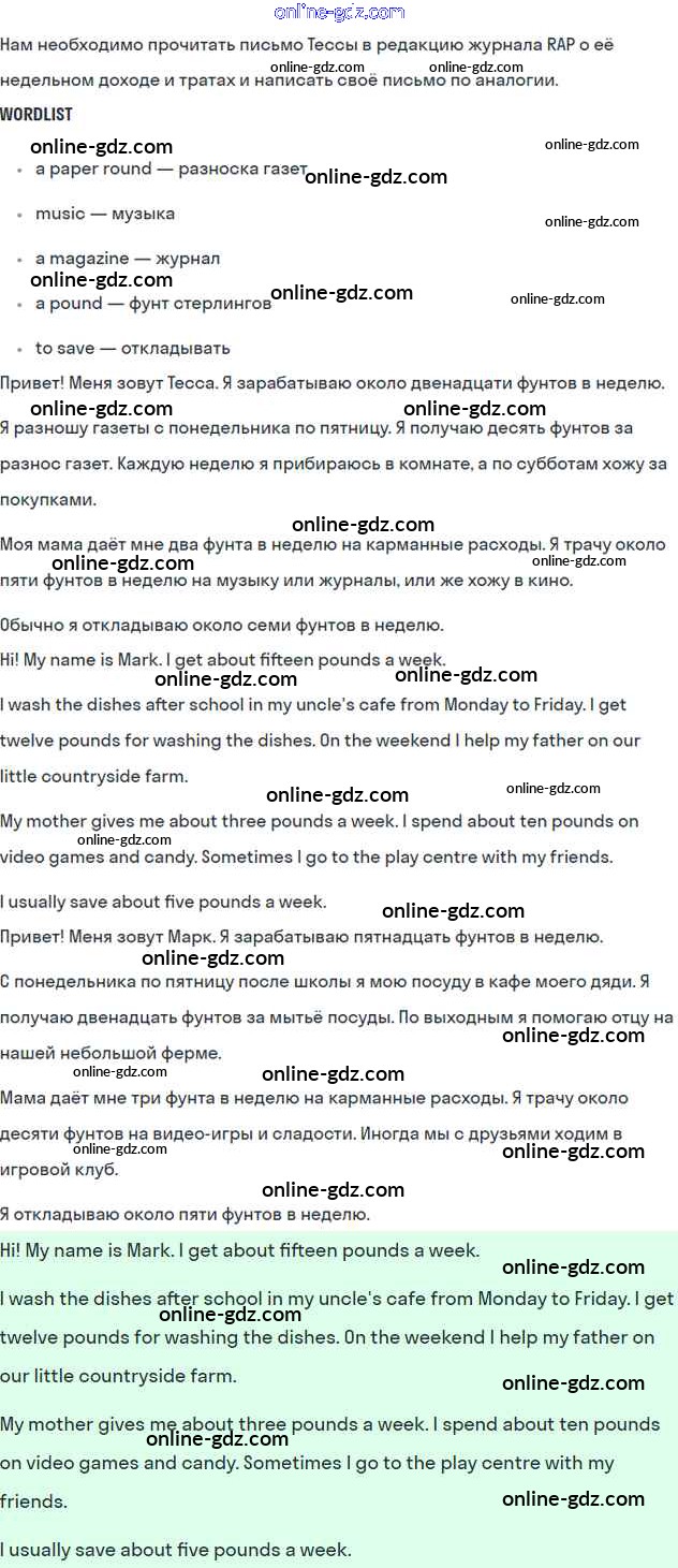 Готовые домашние задания по Английскому языку за 7 класс Рабочая тетрадь Вербицкая, Гаярделли Forward 2015 - Unit 7. Pocket money 5