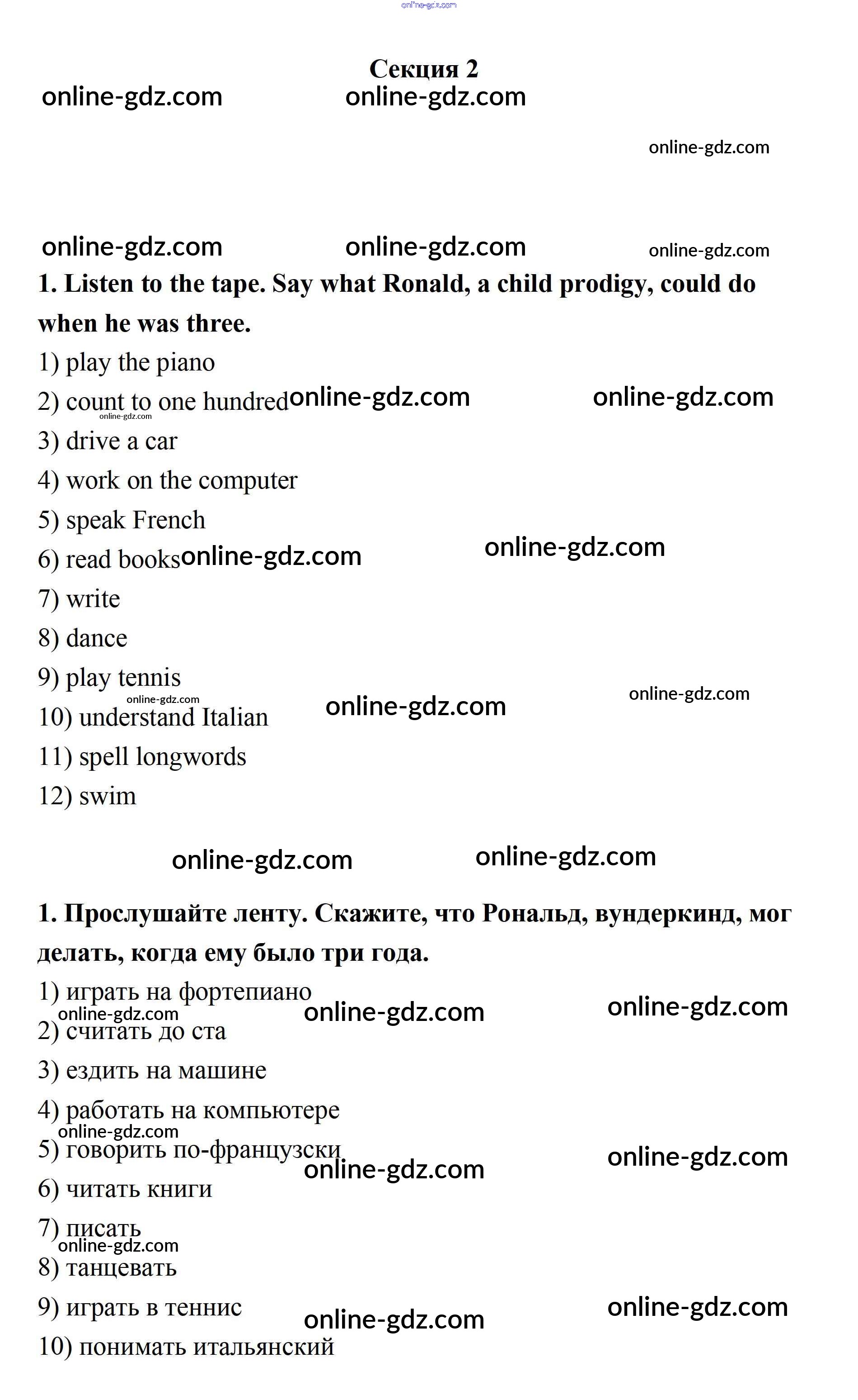 Готовые домашние задания по Английскому языку за 7 класс Учебник Афанасьева, Михеева Новый курс 2015 - Секция 2 Unit 1 1