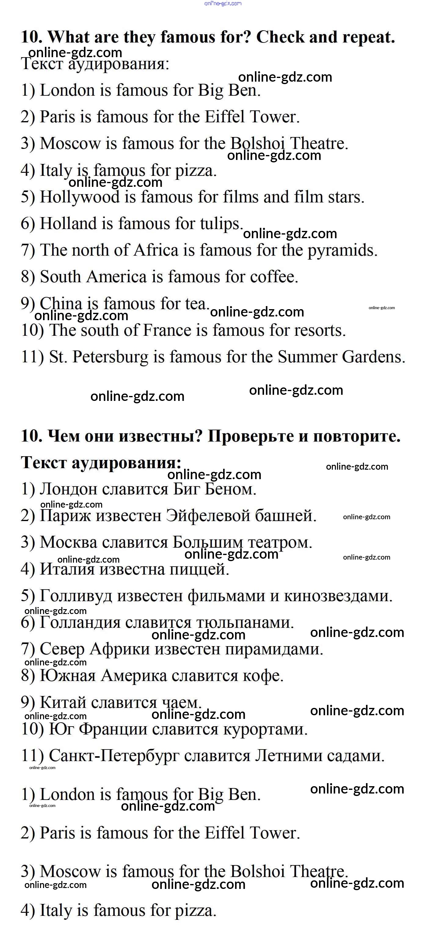 Готовые домашние задания по Английскому языку за 7 класс Учебник Афанасьева, Михеева Новый курс 2015 - Секция 4 Unit 1 10