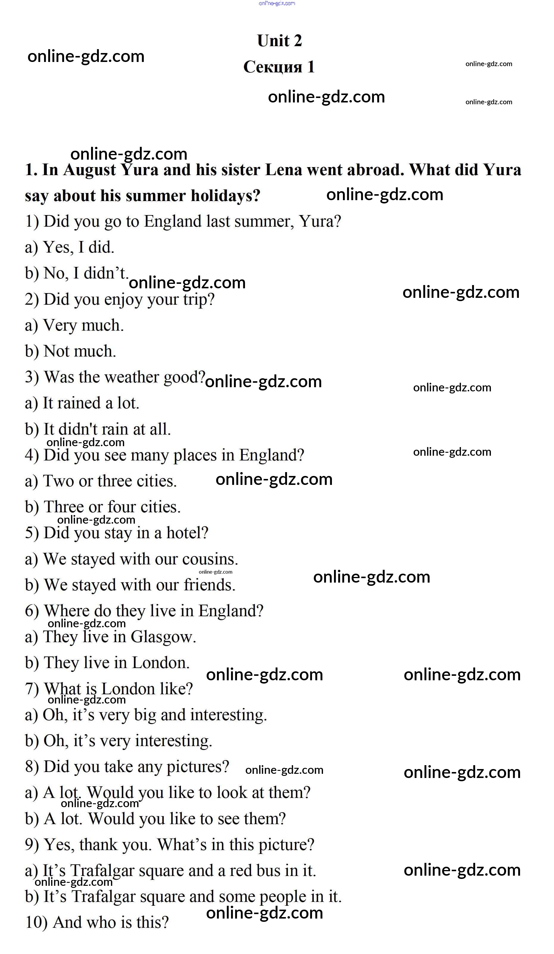 Готовые домашние задания по Английскому языку за 7 класс Учебник Афанасьева, Михеева Новый курс 2015 - Секция 1 Unit 2 1