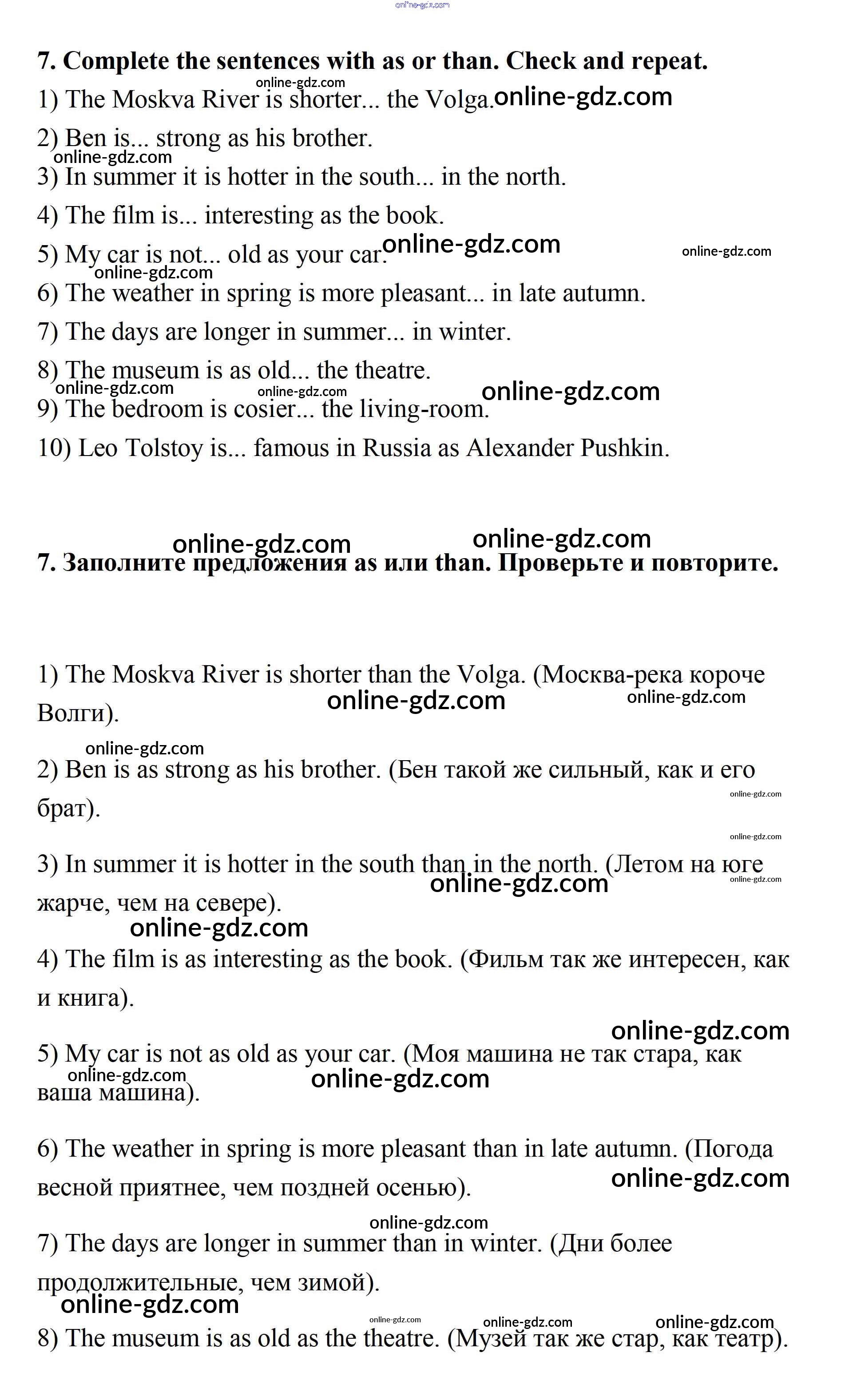 Готовые домашние задания по Английскому языку за 7 класс Учебник Афанасьева, Михеева Новый курс 2015 - Секция 4 Unit 2 7