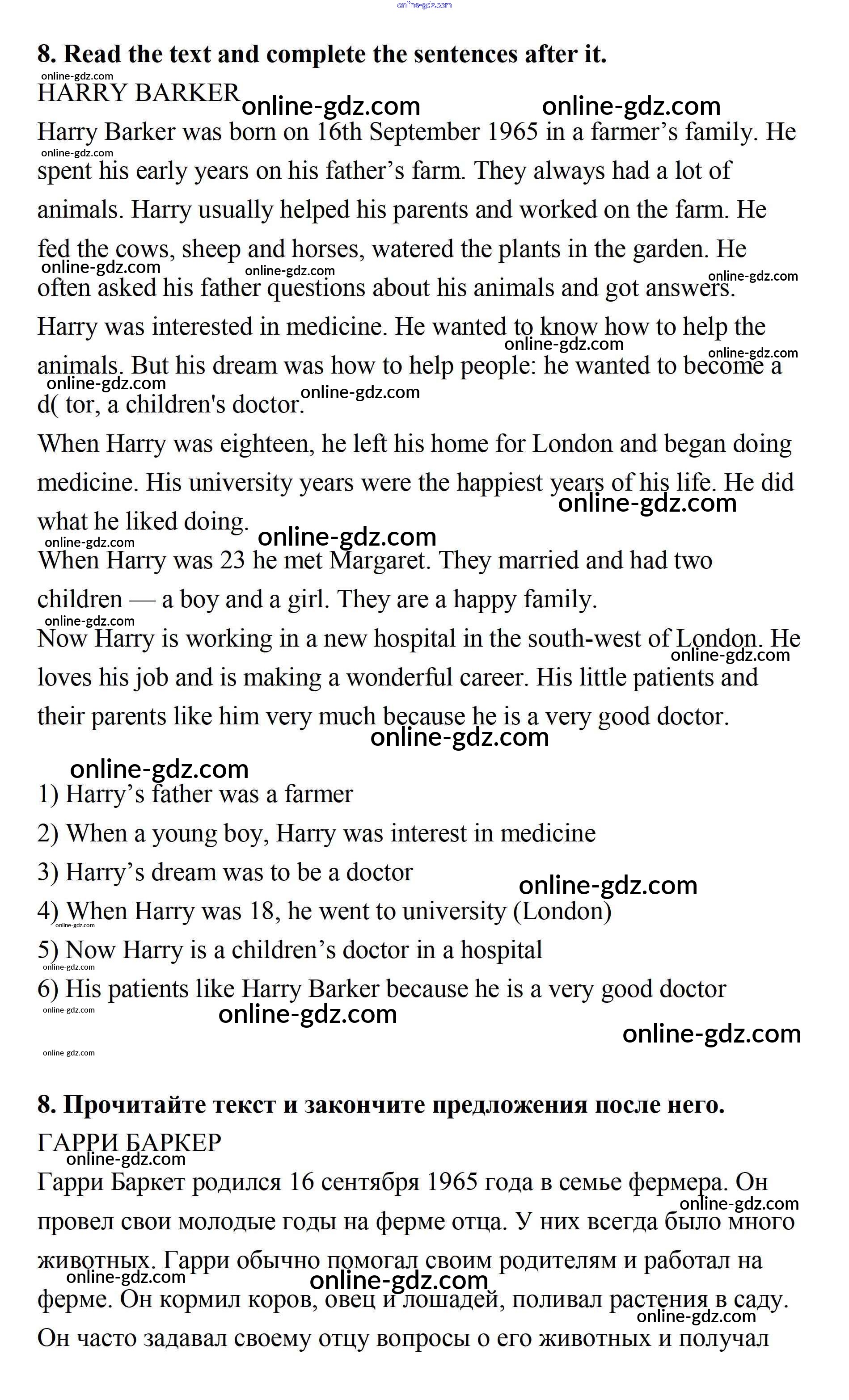 Готовые домашние задания по Английскому языку за 7 класс Учебник Афанасьева, Михеева Новый курс 2015 - Секция 2 Unit 3 8