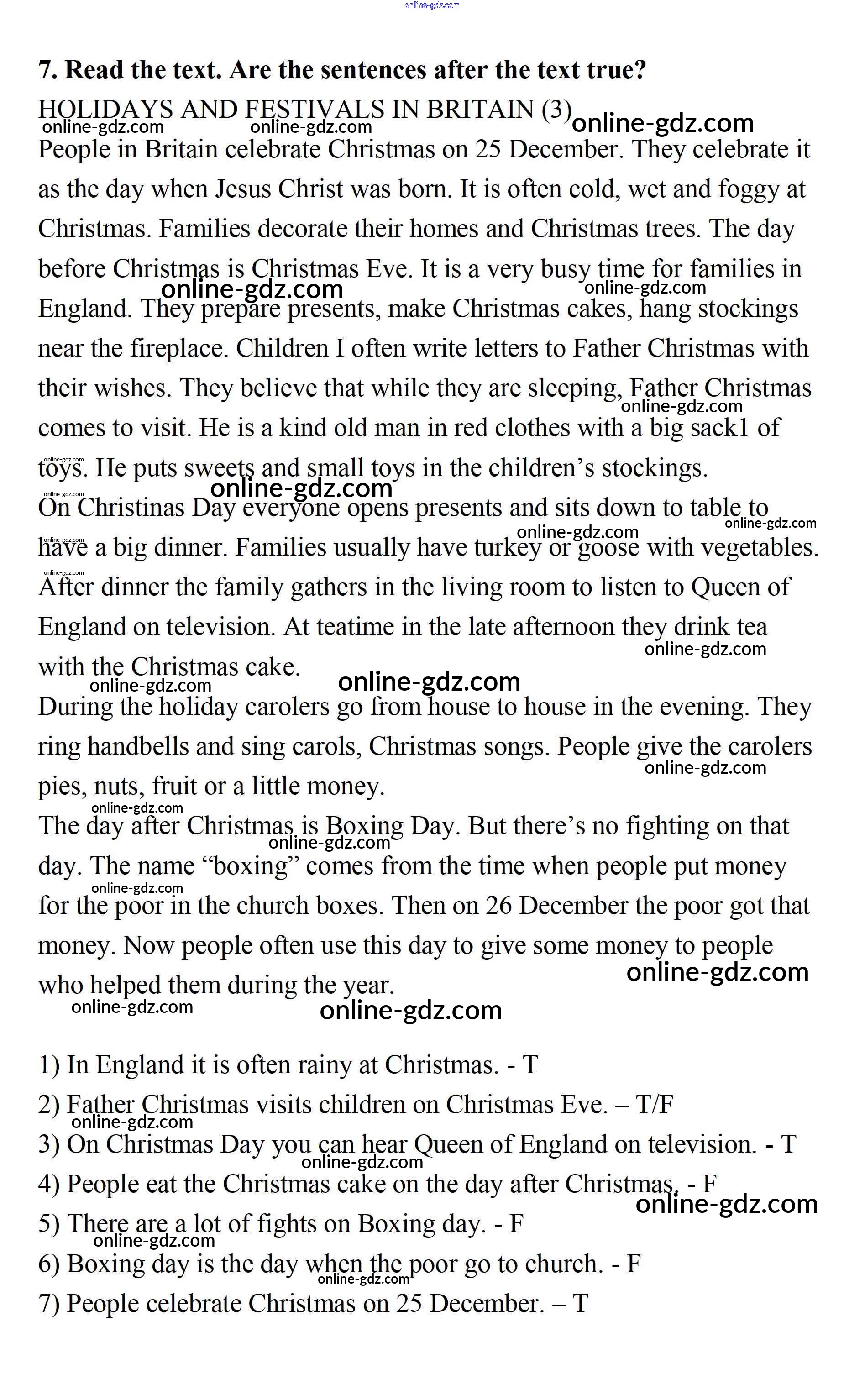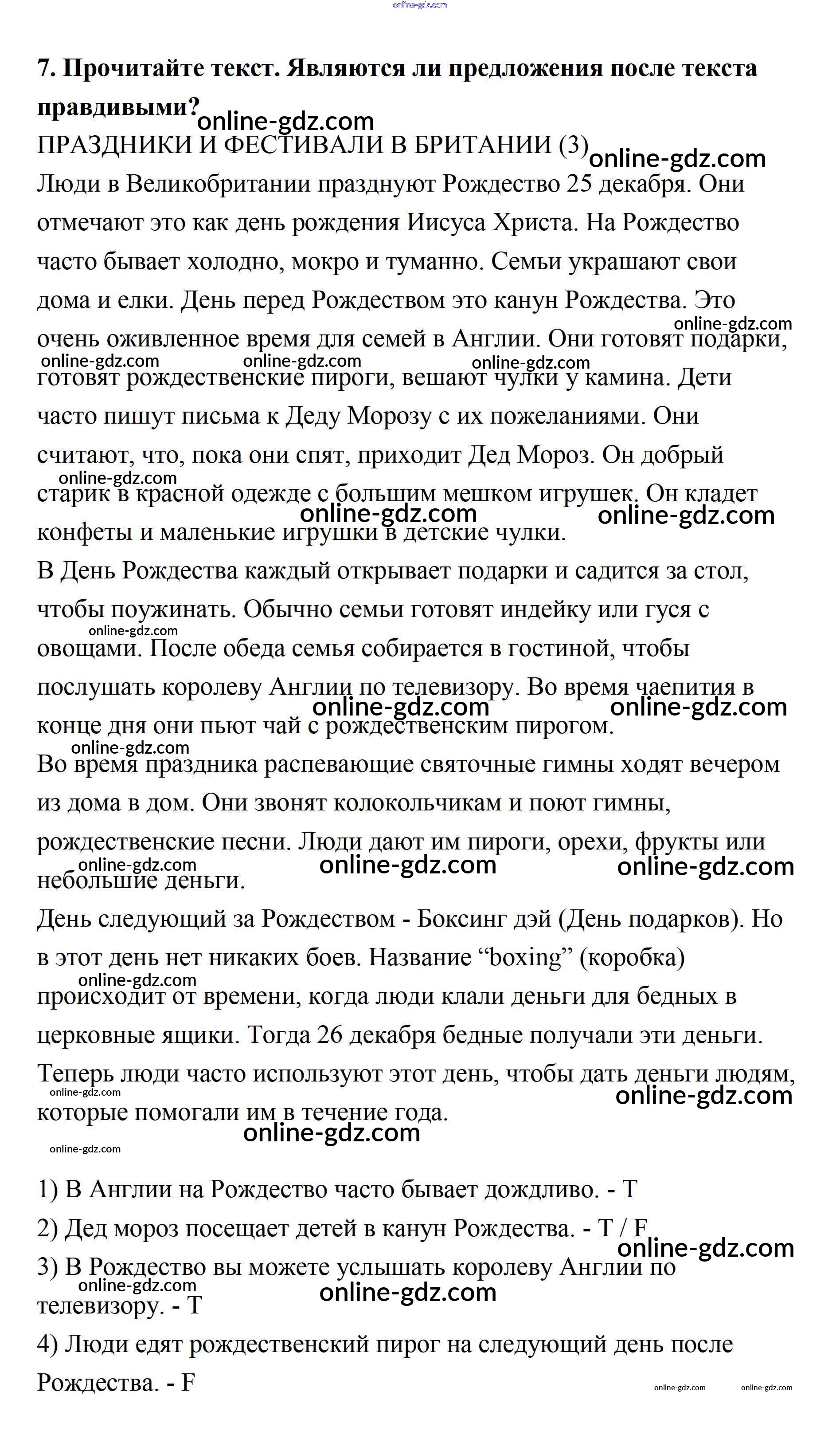 Готовые домашние задания по Английскому языку за 7 класс Учебник Афанасьева, Михеева Новый курс 2015 - Секция 5 Unit 4 7