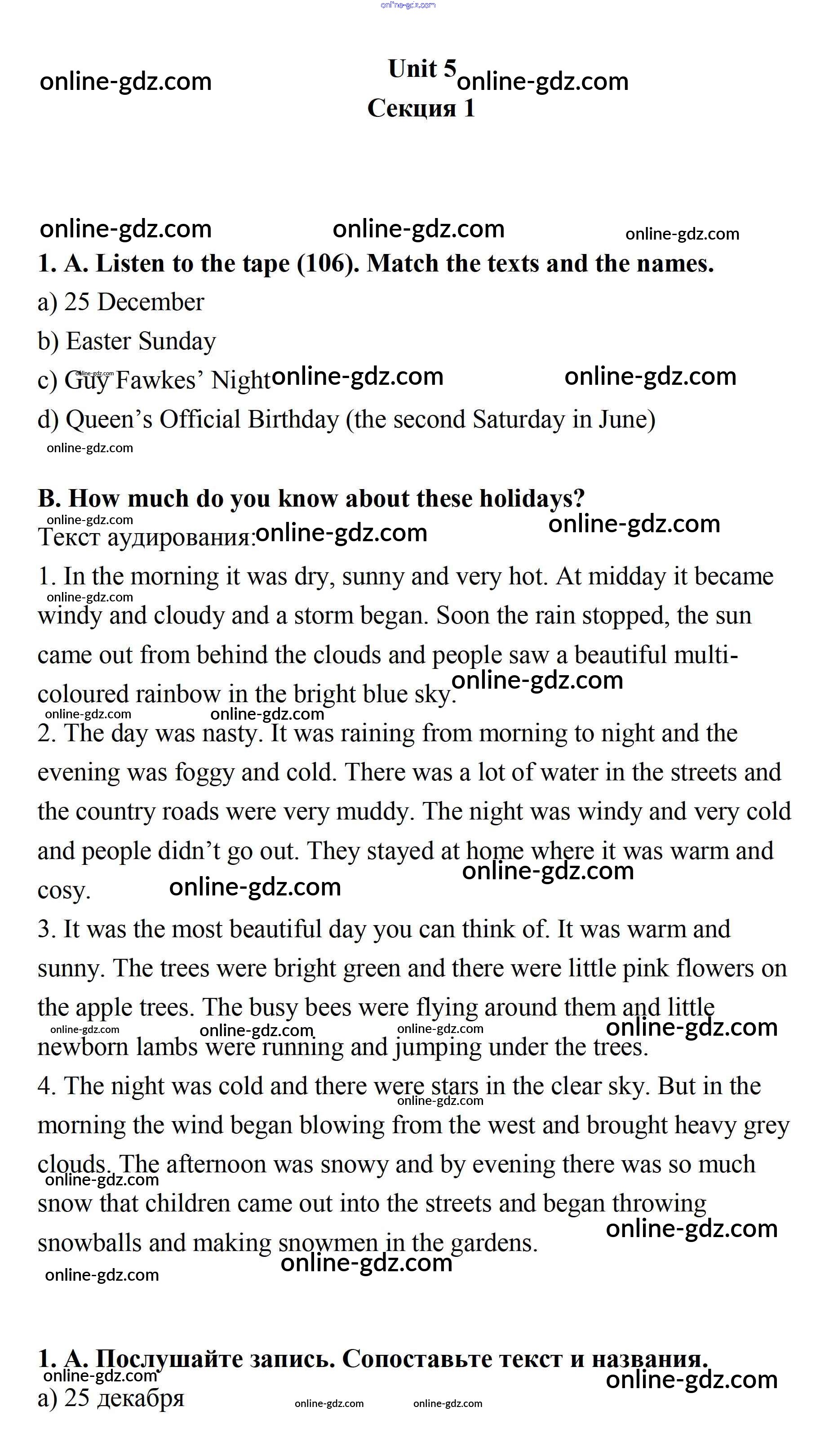 Готовые домашние задания по Английскому языку за 7 класс Учебник Афанасьева, Михеева Новый курс 2015 - Секция 1 Unit 5 1