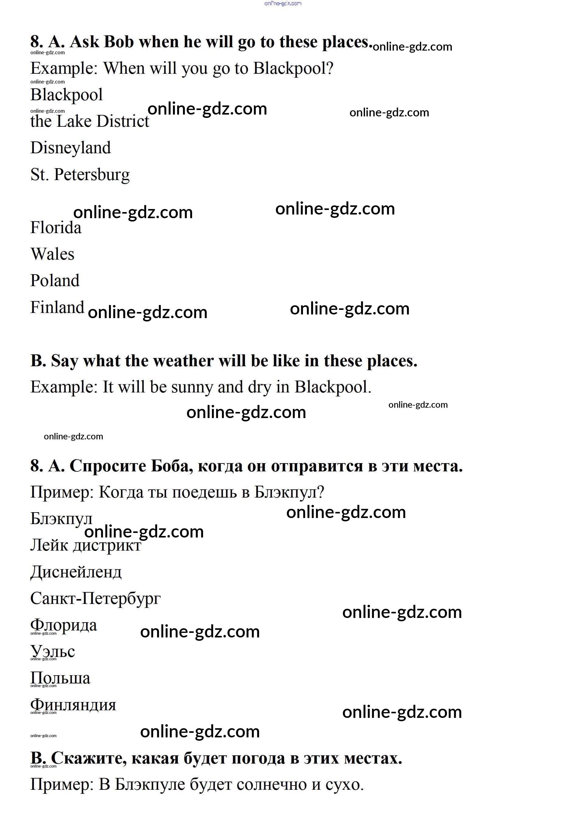 Готовые домашние задания по Английскому языку за 7 класс Учебник Афанасьева, Михеева Новый курс 2015 - Секция 1 Unit 5 8