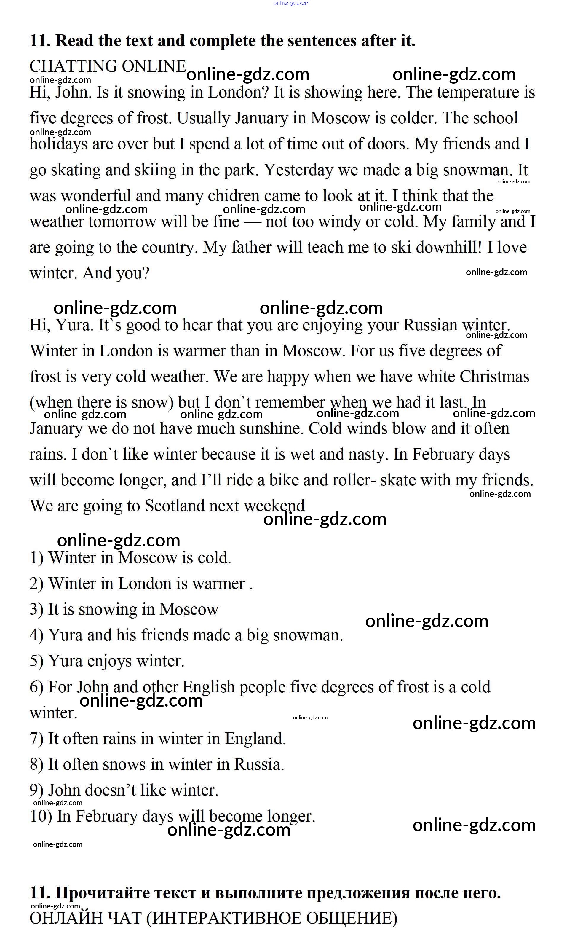 Готовые домашние задания по Английскому языку за 7 класс Учебник Афанасьева, Михеева Новый курс 2015 - Секция 2 Unit 5 11