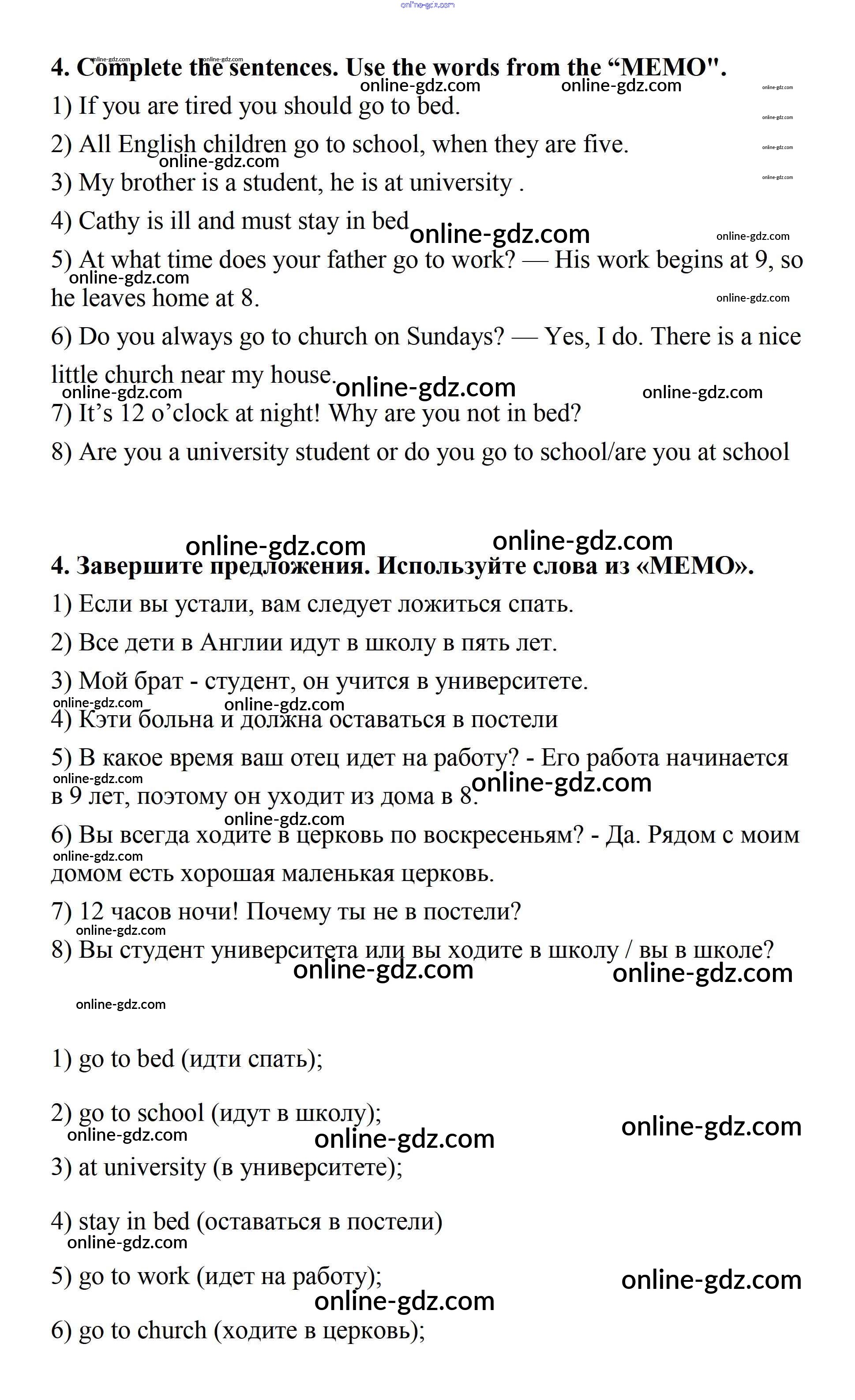 Готовые домашние задания по Английскому языку за 7 класс Учебник Афанасьева, Михеева Новый курс 2015 - Секция 3 Unit 7 4