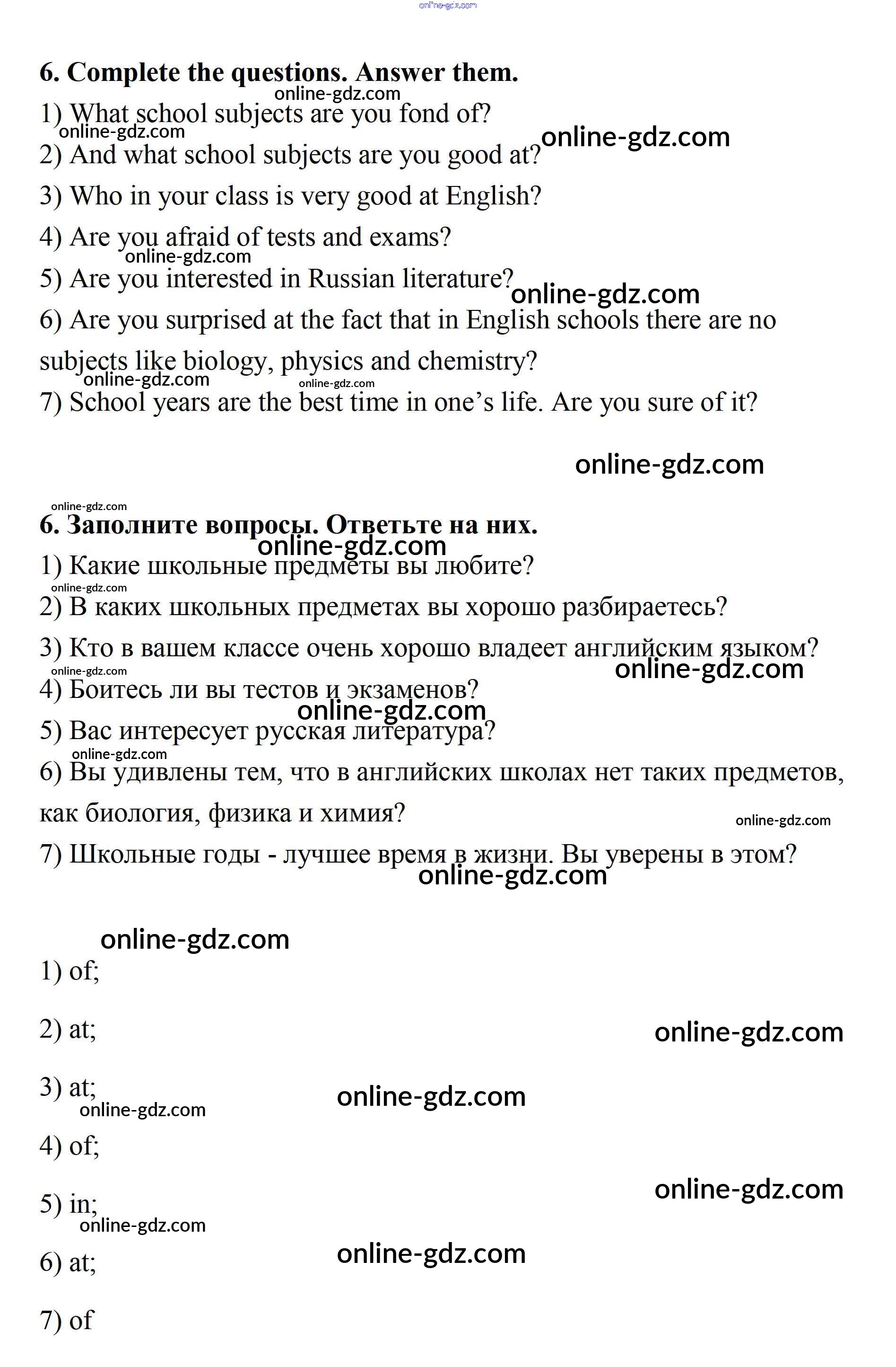 Готовые домашние задания по Английскому языку за 7 класс Учебник Афанасьева, Михеева Новый курс 2015 - Секция 4 Unit 7 6
