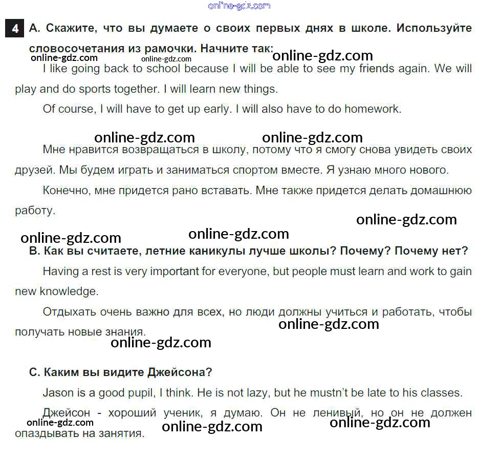 Готовые домашние задания по Английскому языку за 7 класс Учебник Афанасьева, Михеева Rainbow 2019 - Step 1 UNIT 1. SCHOOLS AND SCHOOLING. 4
