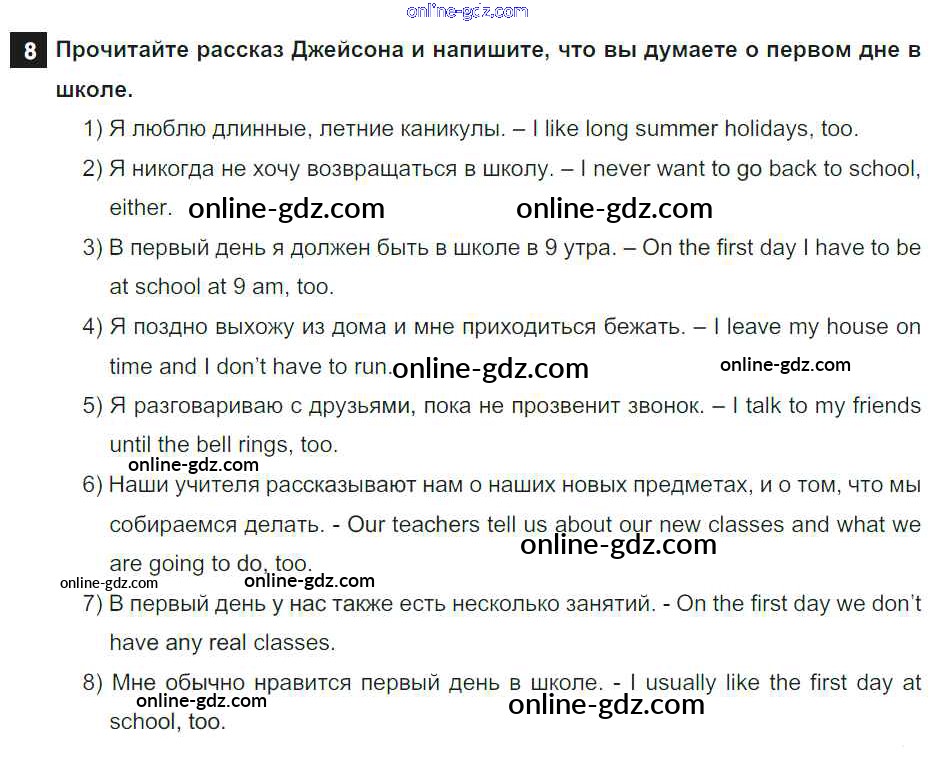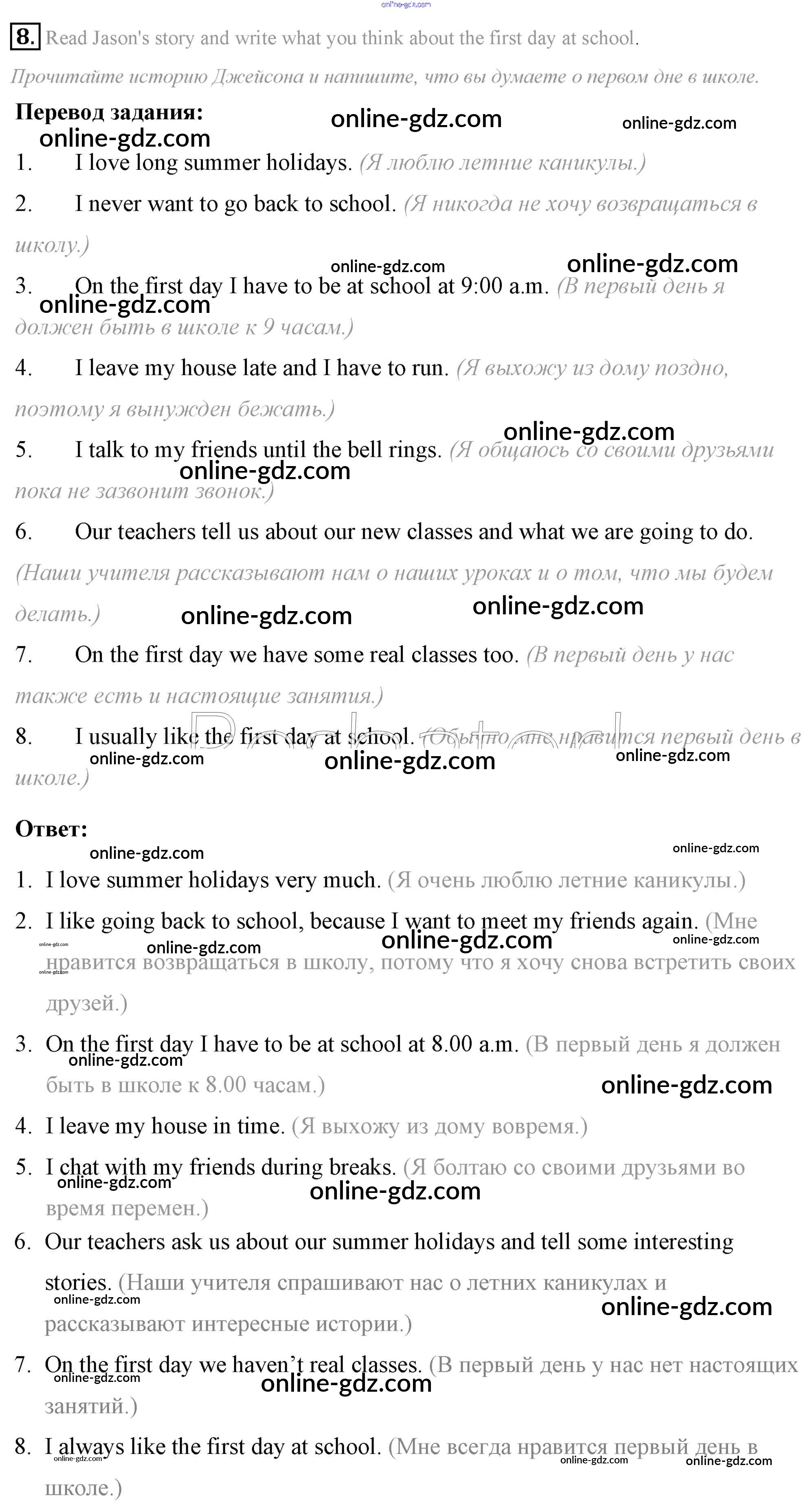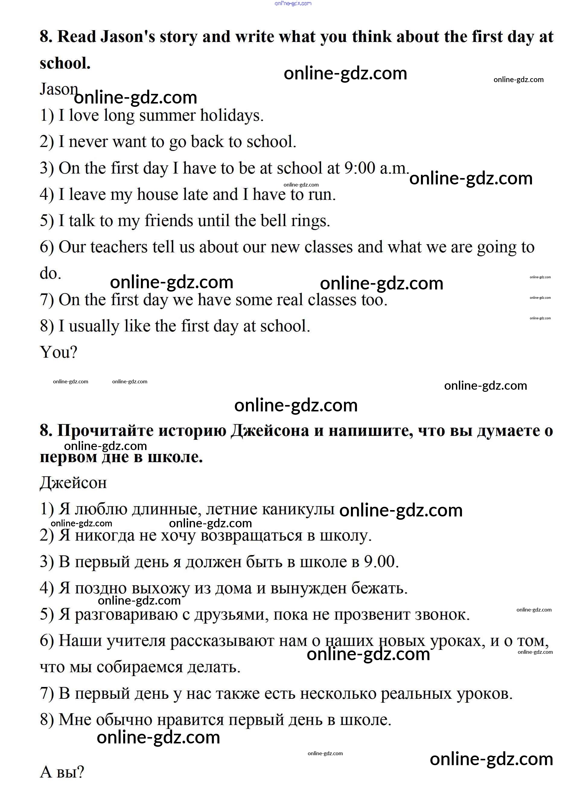 Готовые домашние задания по Английскому языку за 7 класс Учебник Афанасьева, Михеева Rainbow 2019 - Step 1 UNIT 1. SCHOOLS AND SCHOOLING. 8