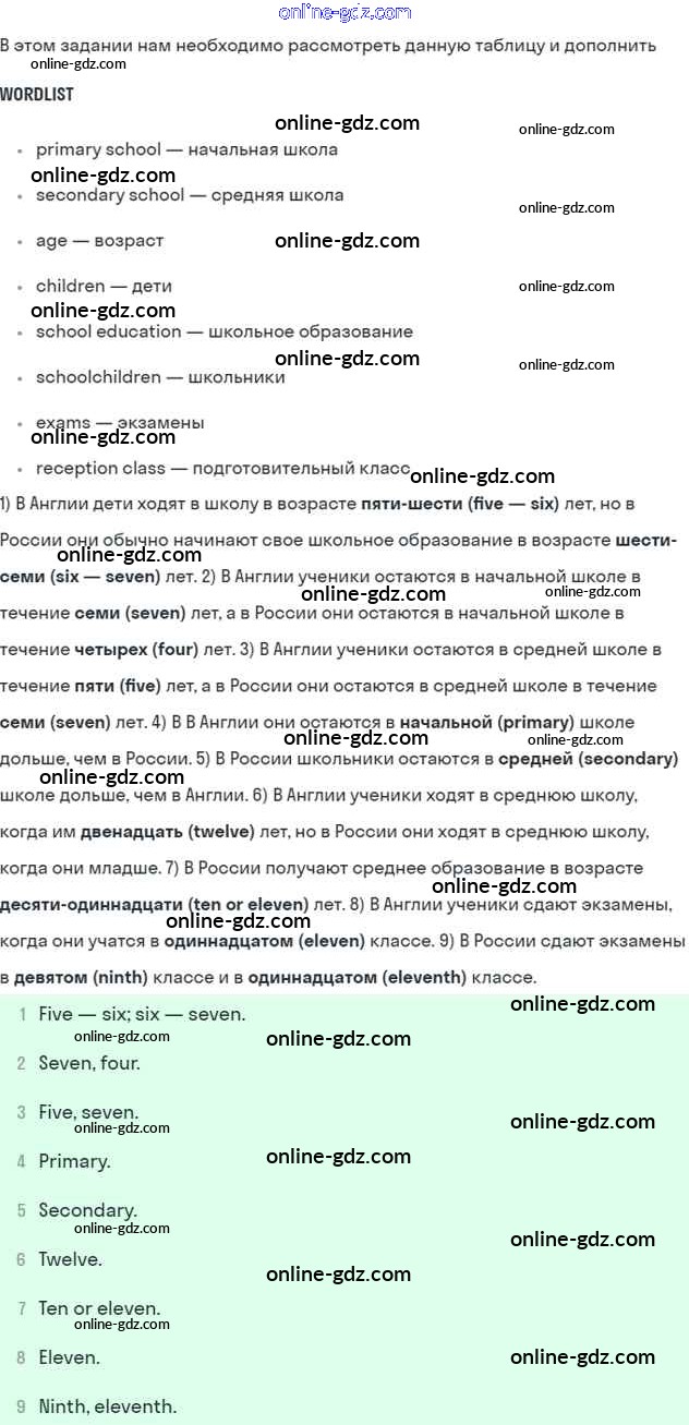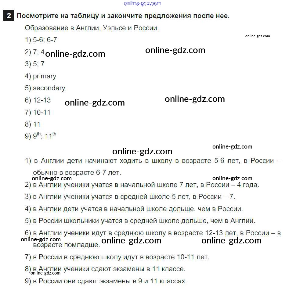 Готовые домашние задания по Английскому языку за 7 класс Учебник Афанасьева, Михеева Rainbow 2019 - Step 7 UNIT 1. SCHOOLS AND SCHOOLING. 2