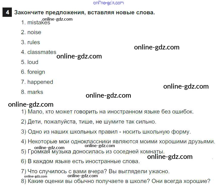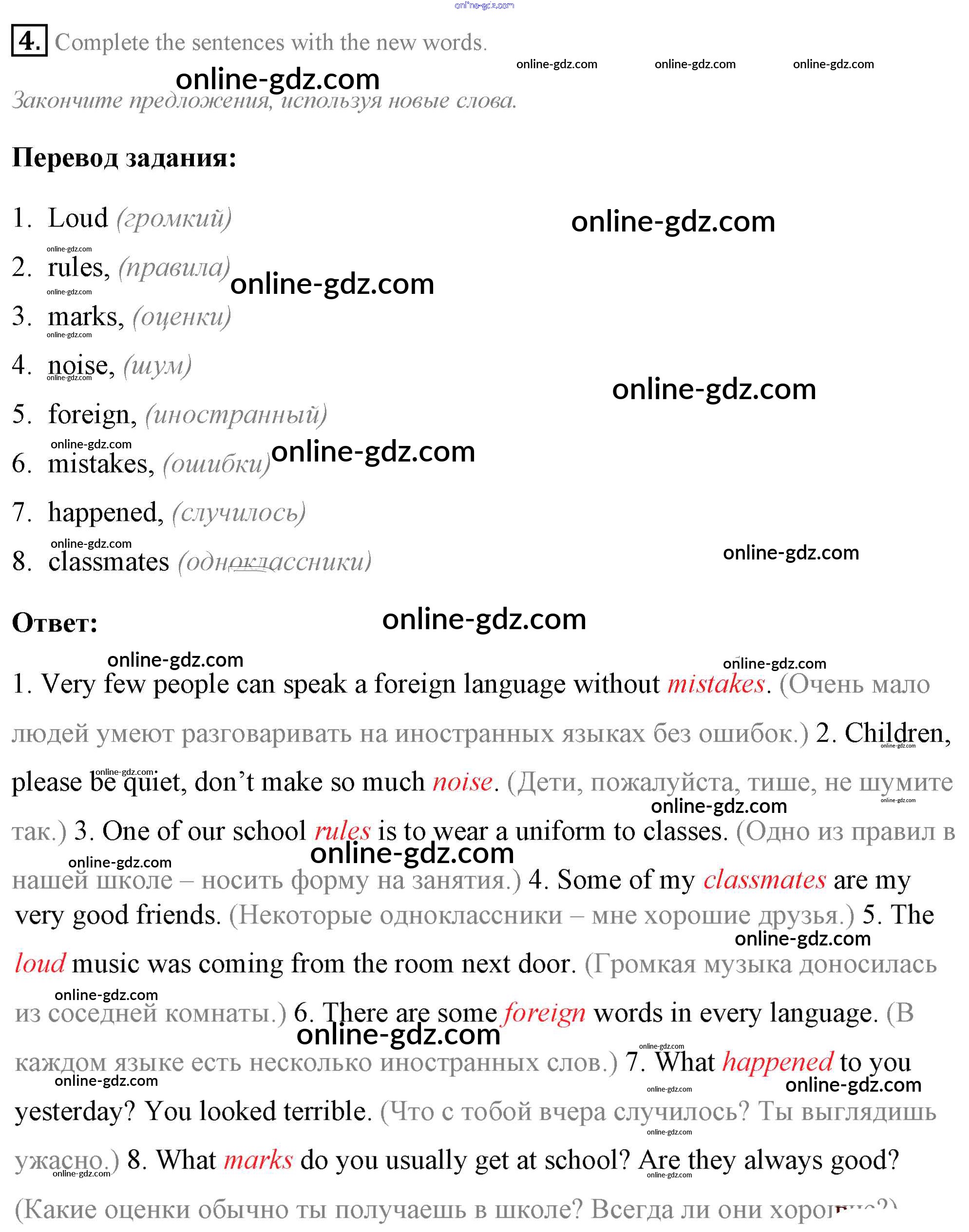 Готовые домашние задания по Английскому языку за 7 класс Учебник Афанасьева, Михеева Rainbow 2019 - Step 7 UNIT 1. SCHOOLS AND SCHOOLING. 4