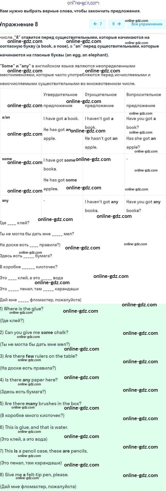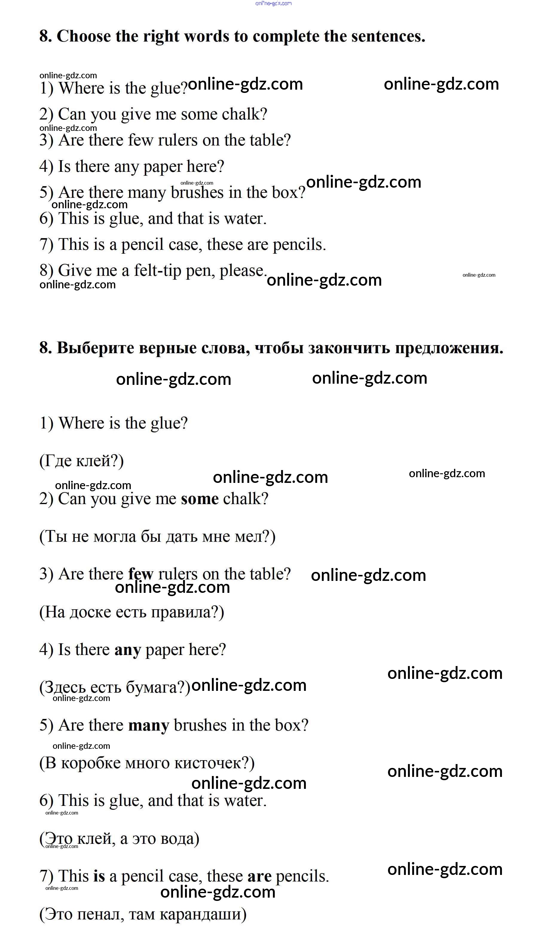 Готовые домашние задания по Английскому языку за 7 класс Учебник Афанасьева, Михеева Rainbow 2019 - Step 2 UNIT 1. SCHOOLS AND SCHOOLING. 8