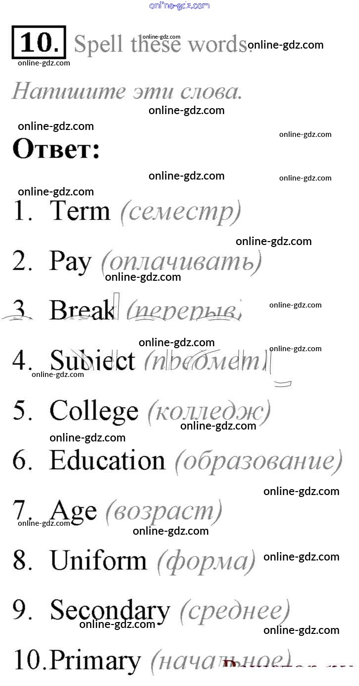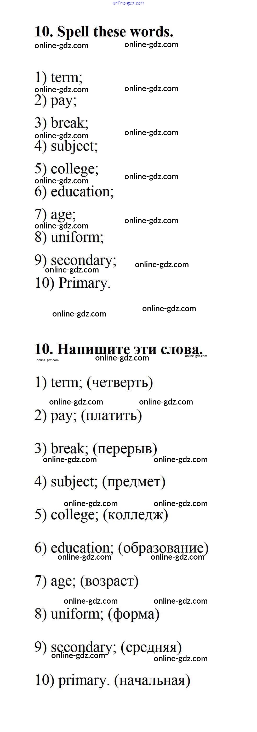 Готовые домашние задания по Английскому языку за 7 класс Учебник Афанасьева, Михеева Rainbow 2019 - Step 4 UNIT 1. SCHOOLS AND SCHOOLING. 10