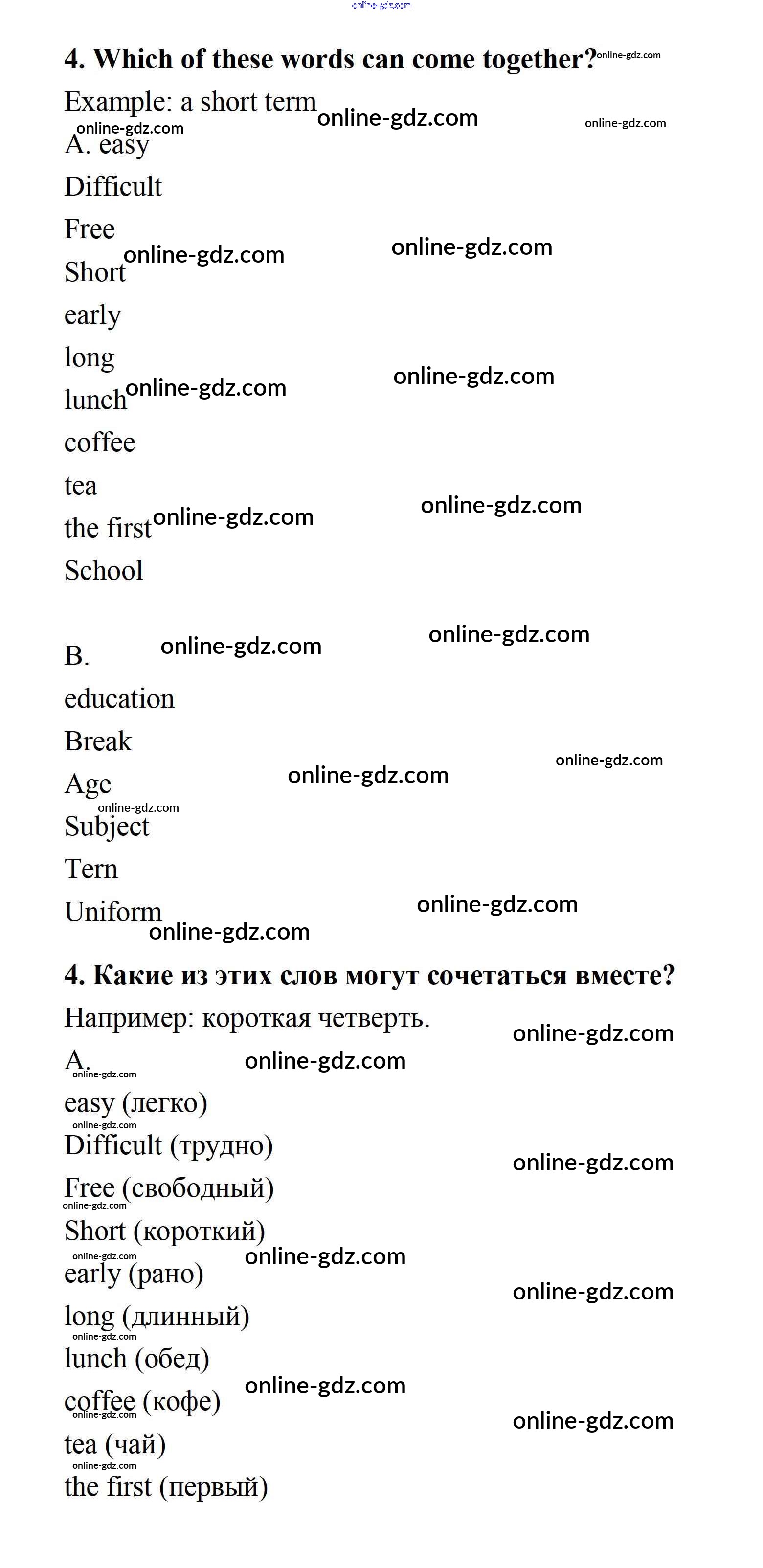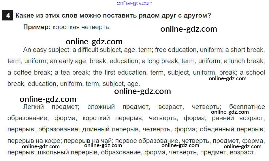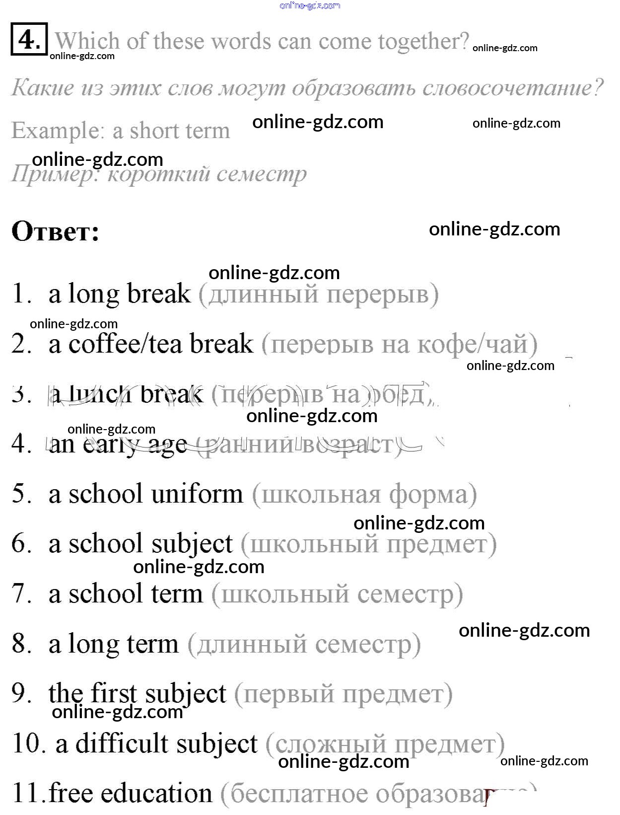 Готовые домашние задания по Английскому языку за 7 класс Учебник Афанасьева, Михеева Rainbow 2019 - Step 4 UNIT 1. SCHOOLS AND SCHOOLING. 4