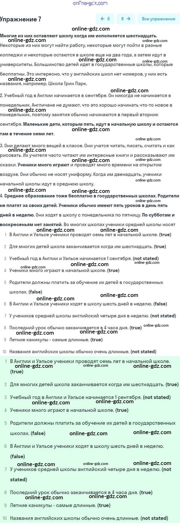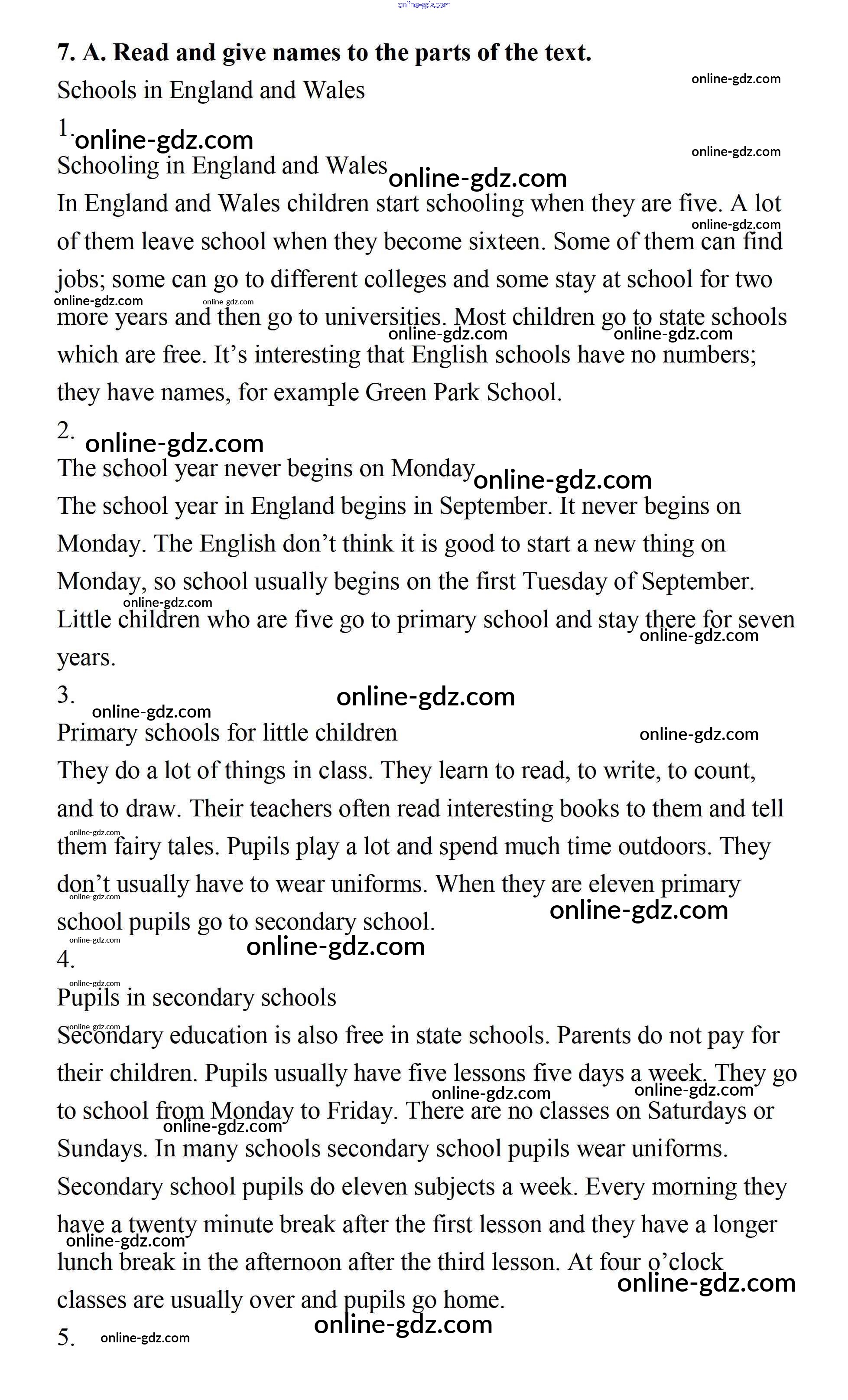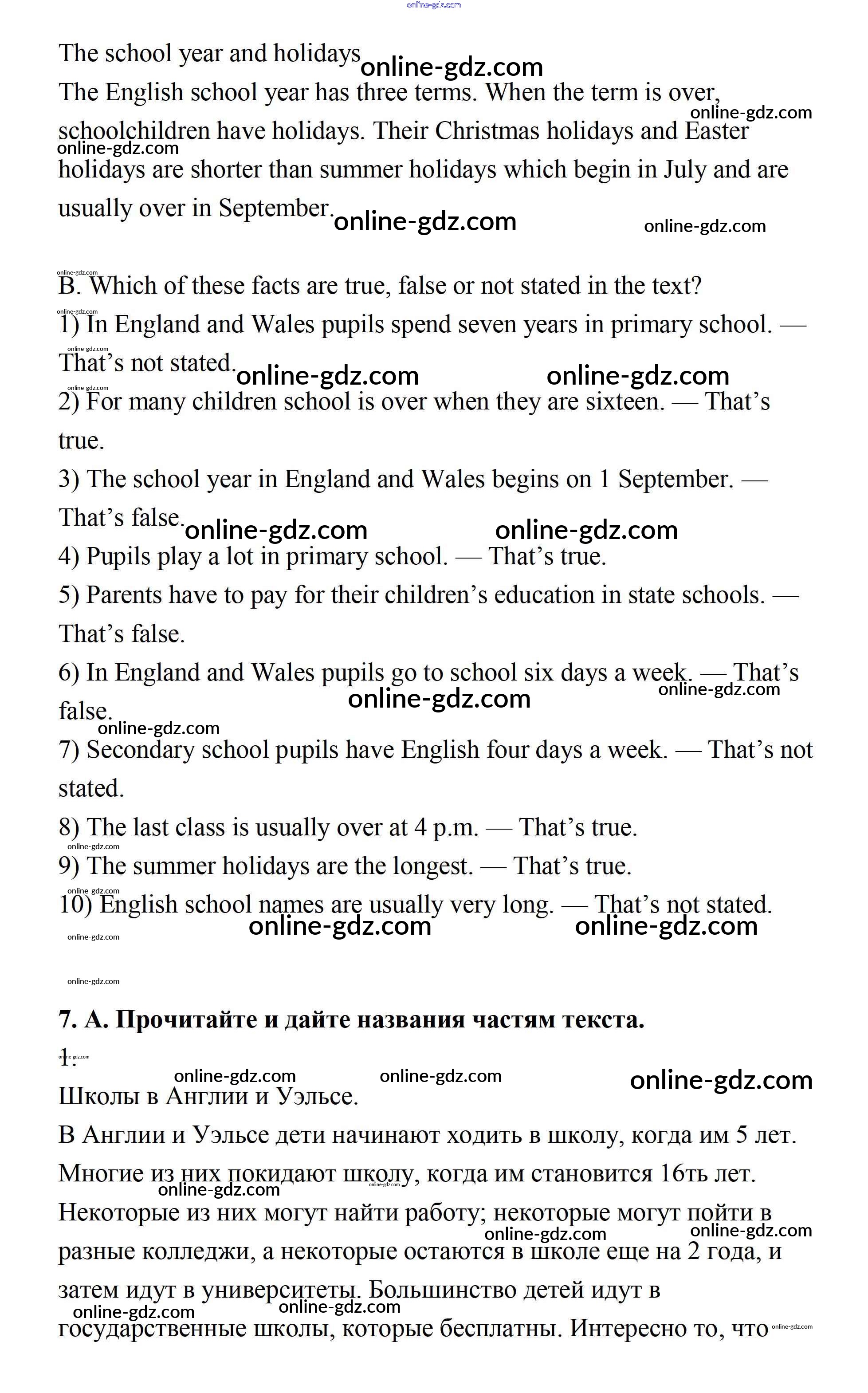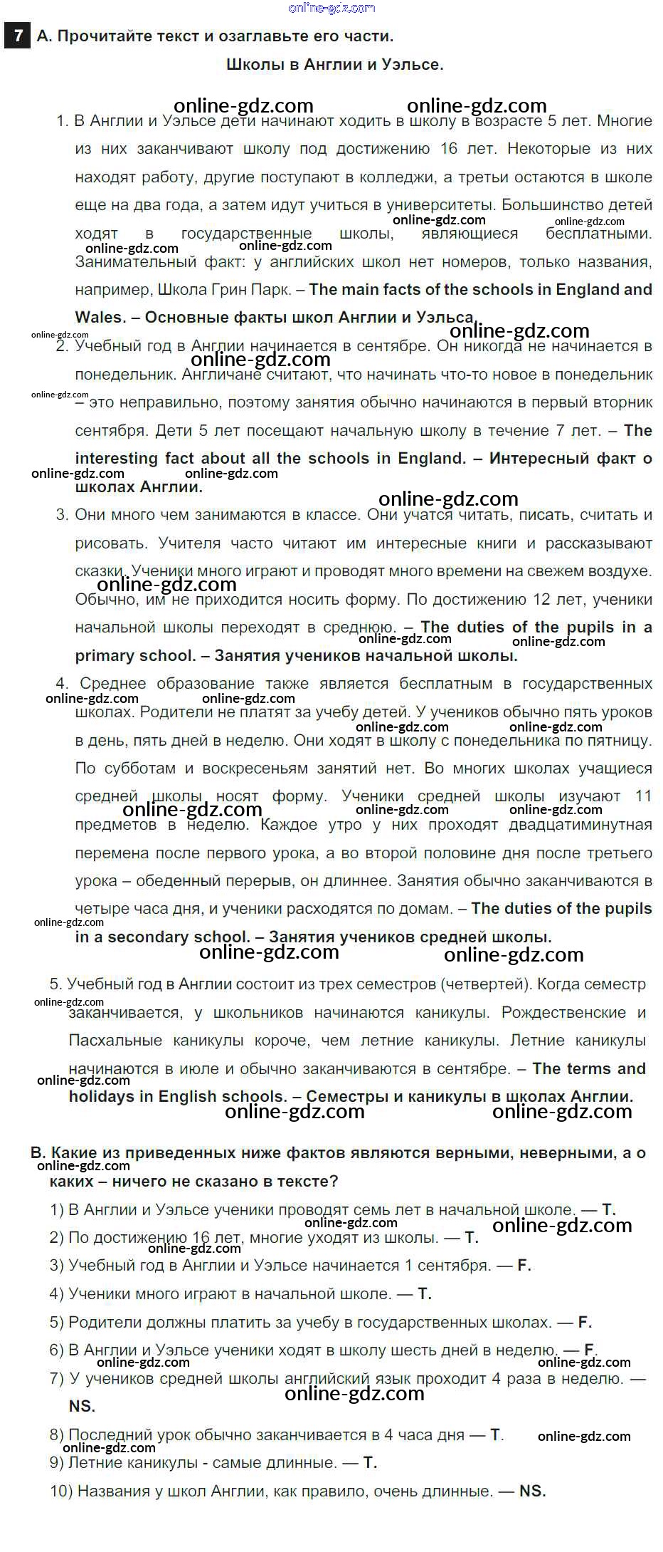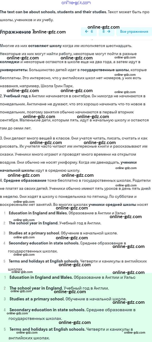 Готовые домашние задания по Английскому языку за 7 класс Учебник Афанасьева, Михеева Rainbow 2019 - Step 4 UNIT 1. SCHOOLS AND SCHOOLING. 7