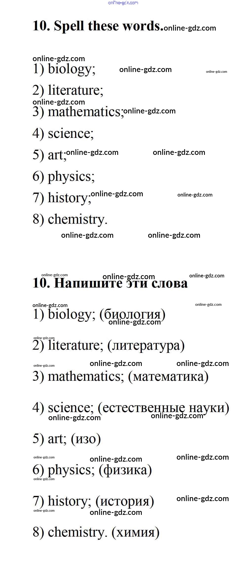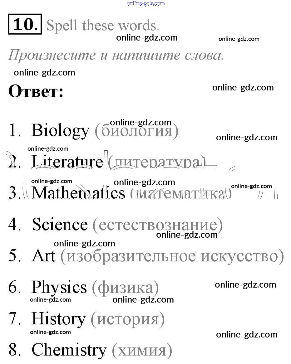 Готовые домашние задания по Английскому языку за 7 класс Учебник Афанасьева, Михеева Rainbow 2019 - Step 6 UNIT 1. SCHOOLS AND SCHOOLING. 10