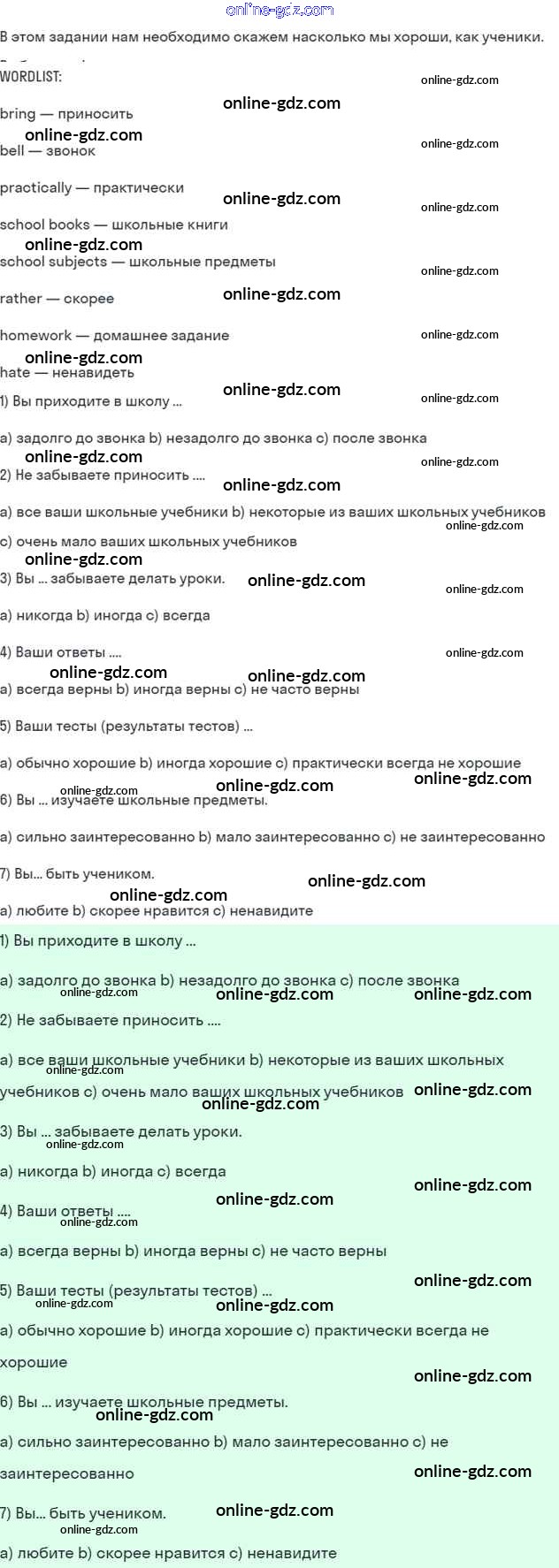 Готовые домашние задания по Английскому языку за 7 класс Учебник Афанасьева, Михеева Rainbow 2019 - Step 6 UNIT 1. SCHOOLS AND SCHOOLING. 7