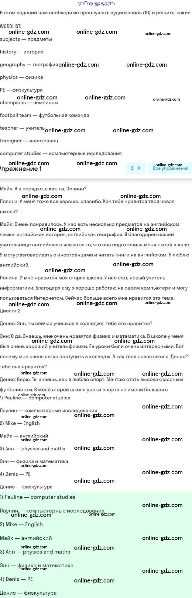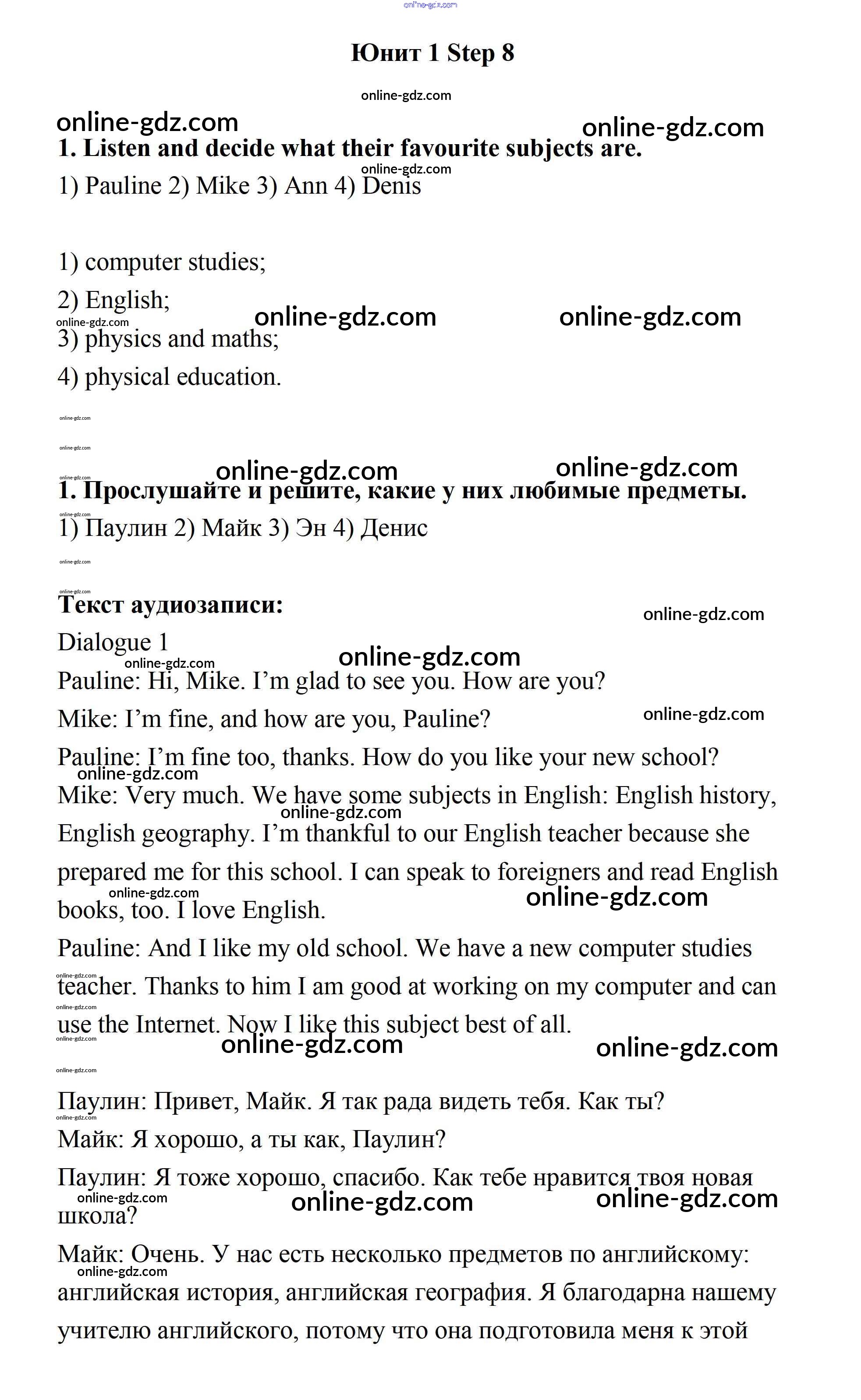 Готовые домашние задания по Английскому языку за 7 класс Учебник Афанасьева, Михеева Rainbow 2019 - Step 8 UNIT 1. SCHOOLS AND SCHOOLING. 1