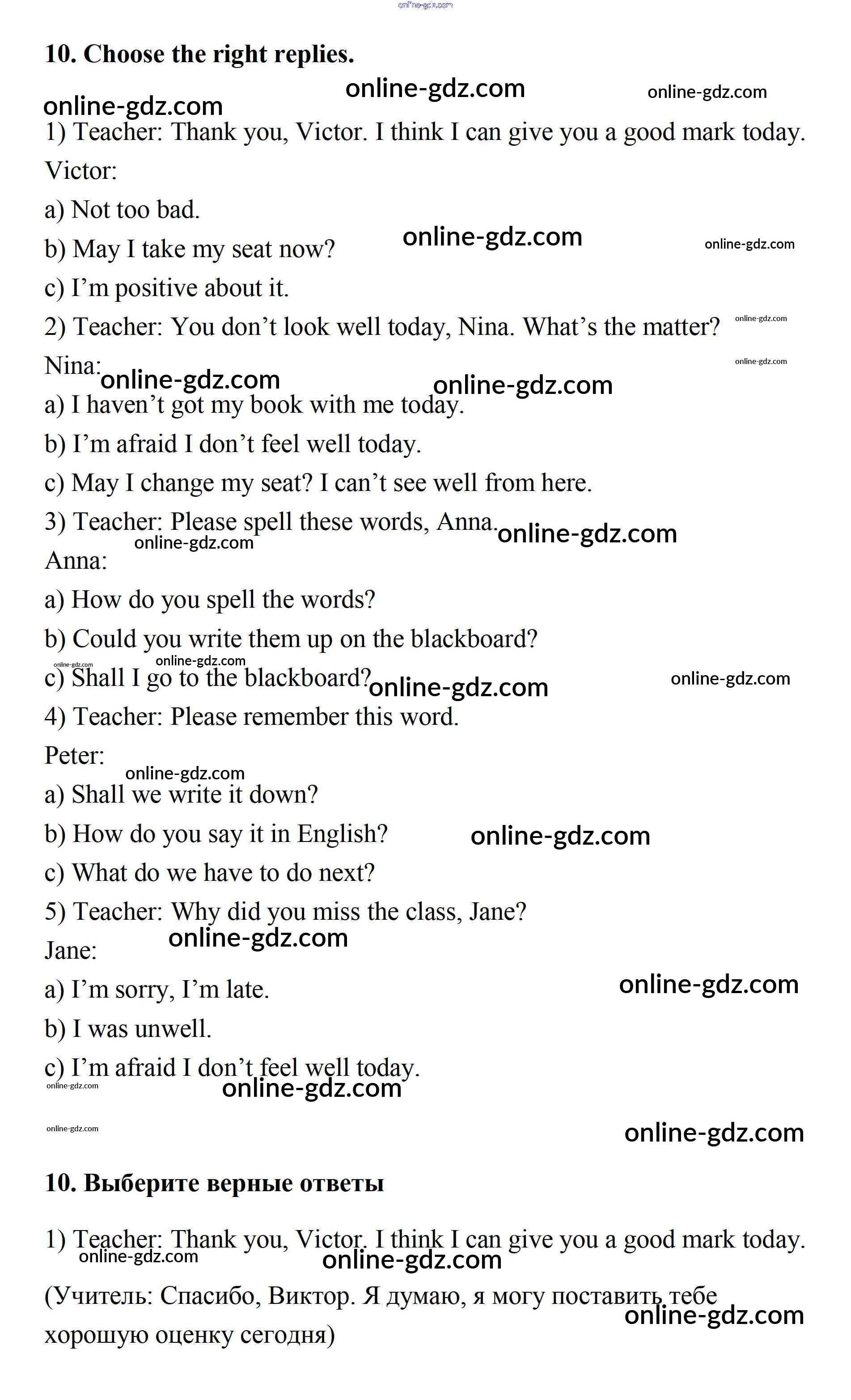 Готовые домашние задания по Английскому языку за 7 класс Учебник Афанасьева, Михеева Rainbow 2019 - Step 8 UNIT 1. SCHOOLS AND SCHOOLING. 10